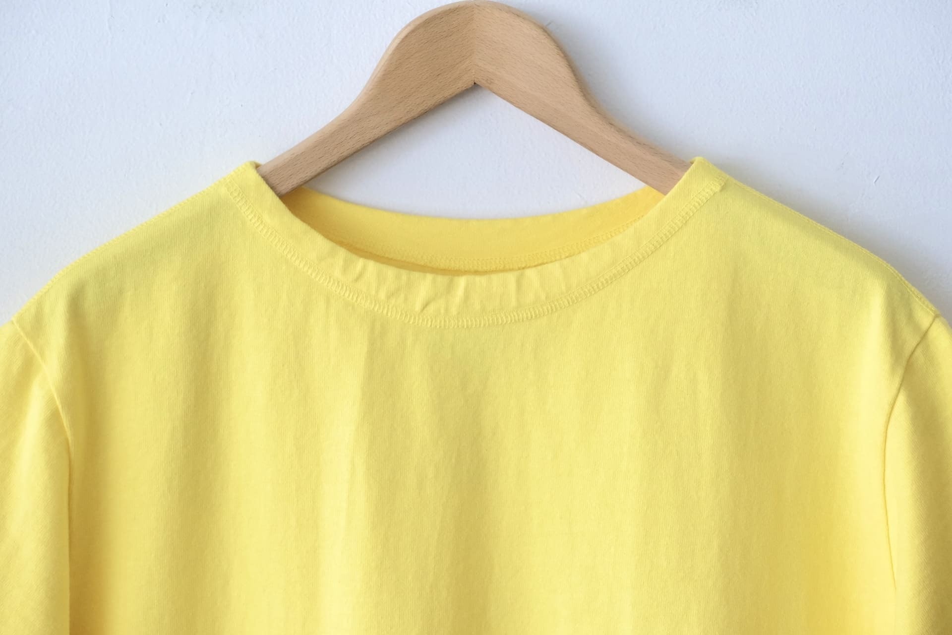 ネック部分がボートネック調でやや広めになるので、暑い夏などストレスなく着ていただけます。
