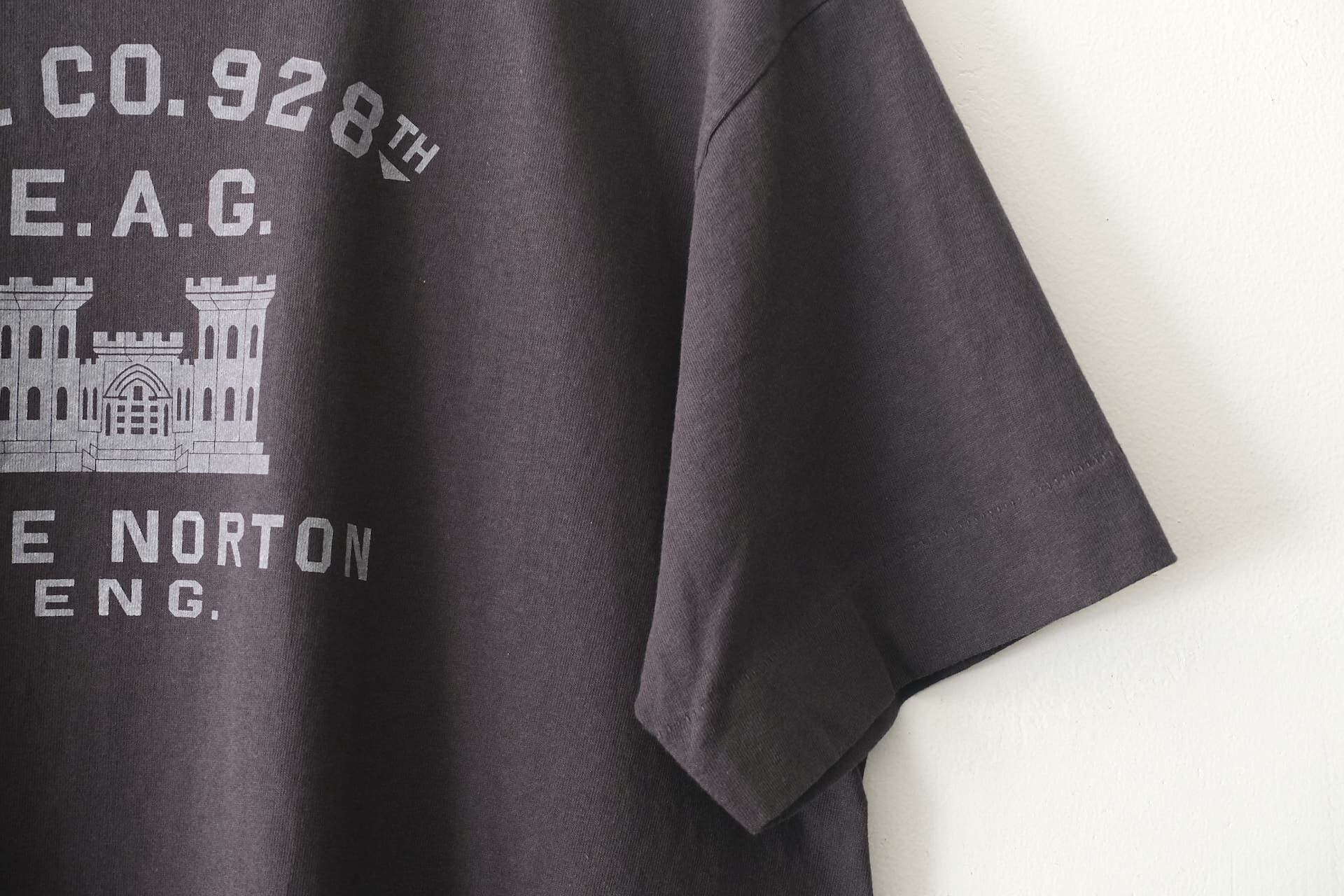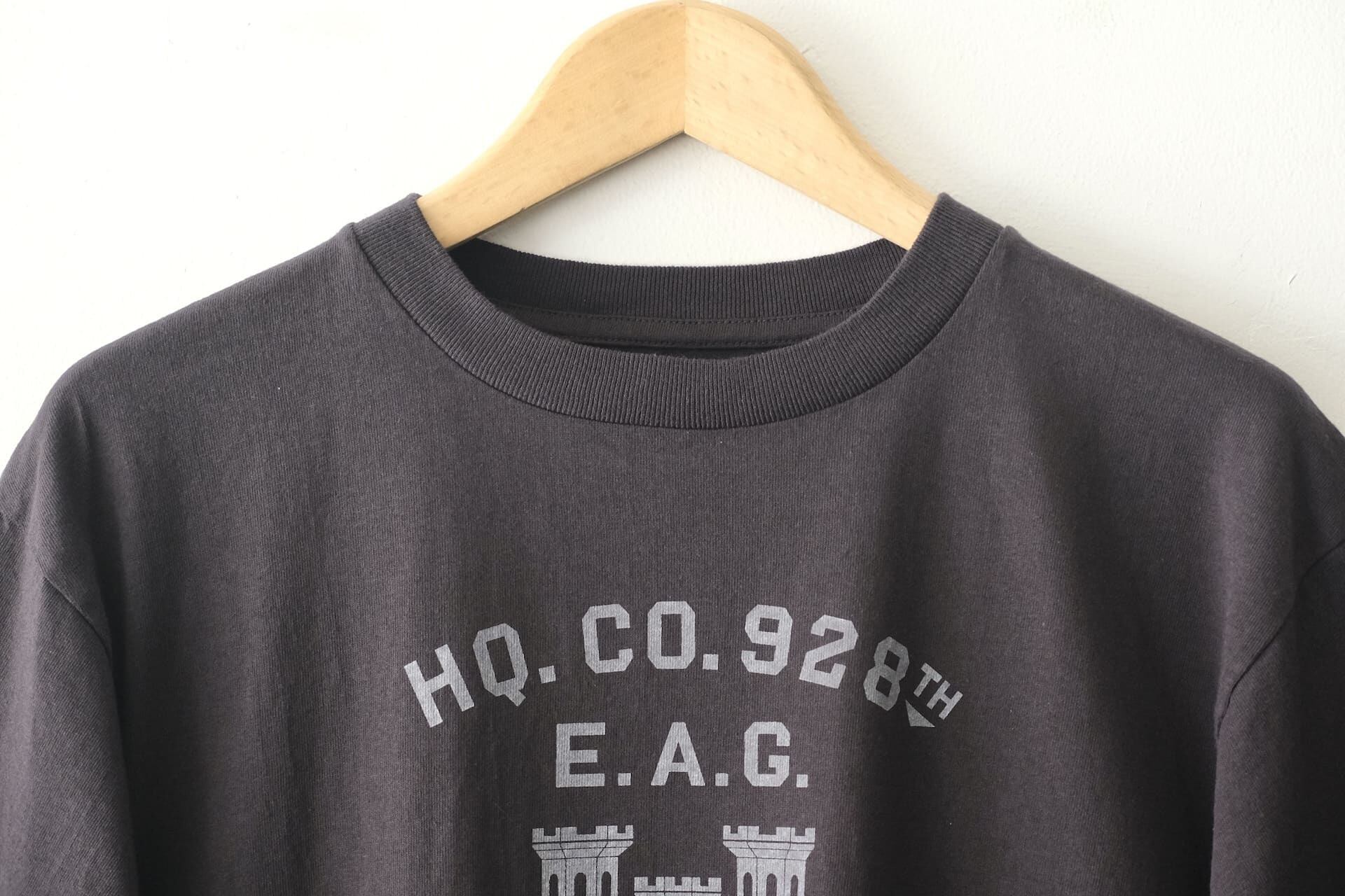 このTシャツは5.6オンスの米綿100%オリジナルボディを使い、丸胴や太めな裾引きステッチ、肩や衿部分にかけてのタコバインダーなどクラシックな仕様になっています。