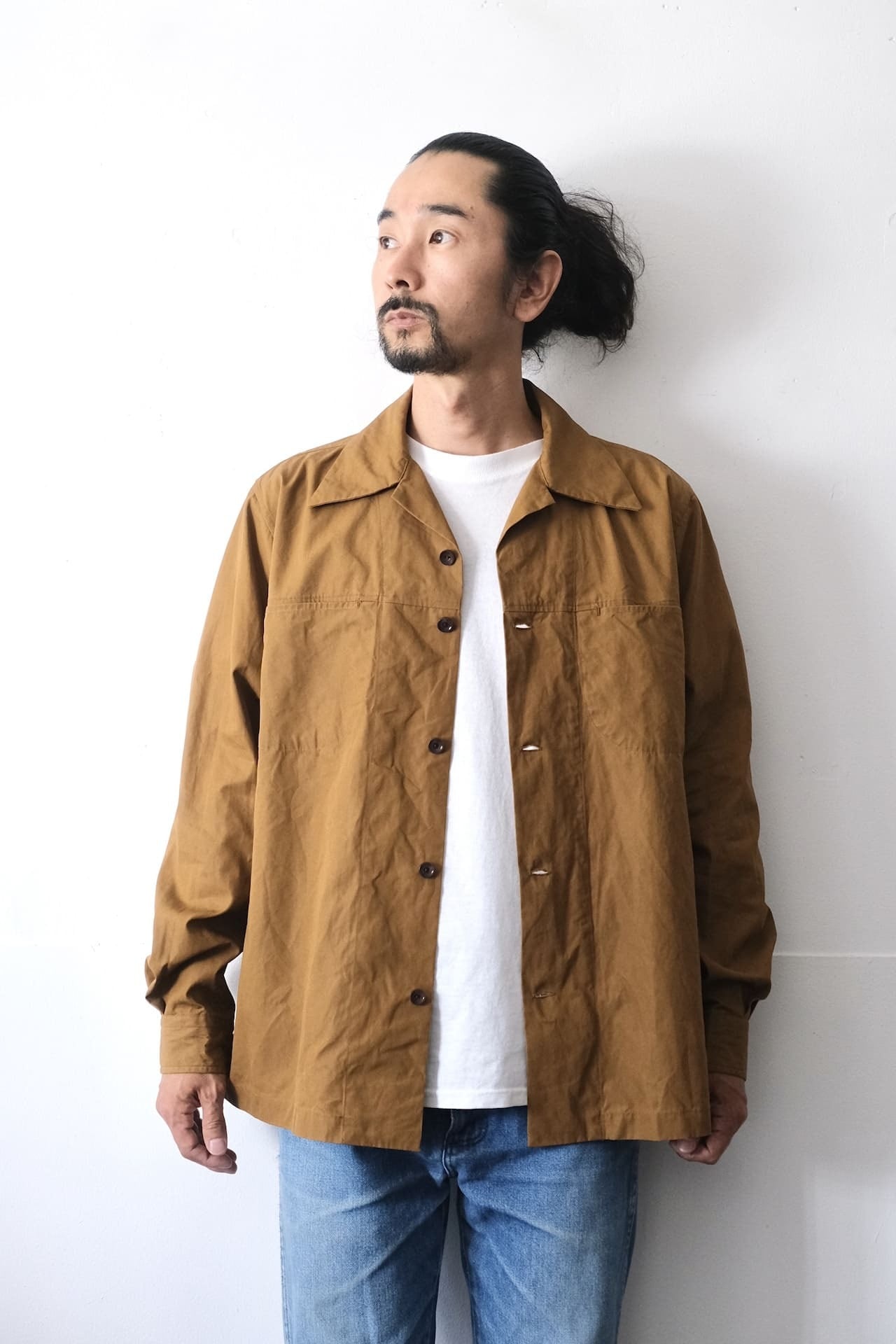 このシャツは高密度に織られたウェザー生地に、塩縮・樹脂・微起毛を組み合わせた独自の加工を施しヴィンテージのような風合いになっています。