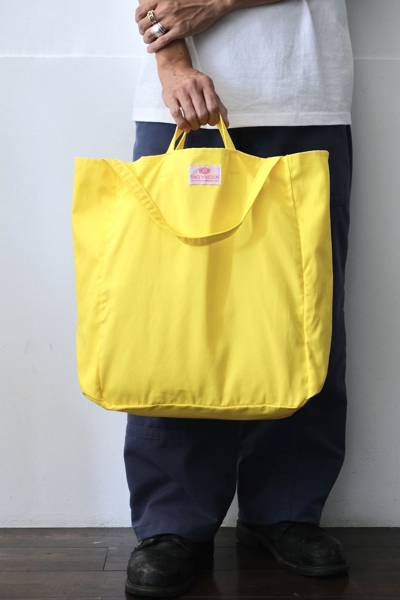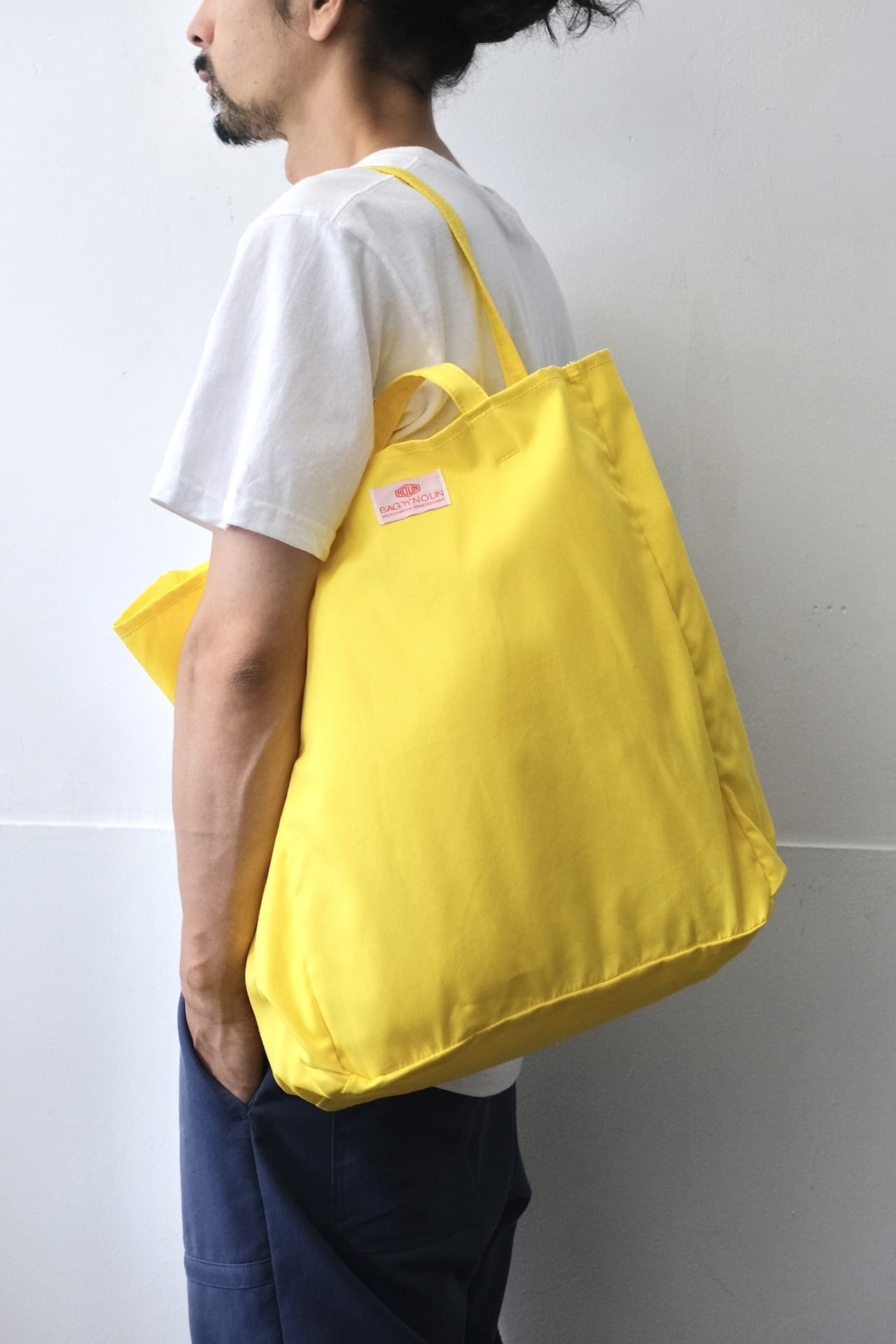 このバッグは程よい厚みのコットン100%の生地を使い、リベットやボタンなどは省いた軽量でシンプルなものに仕上がっています。