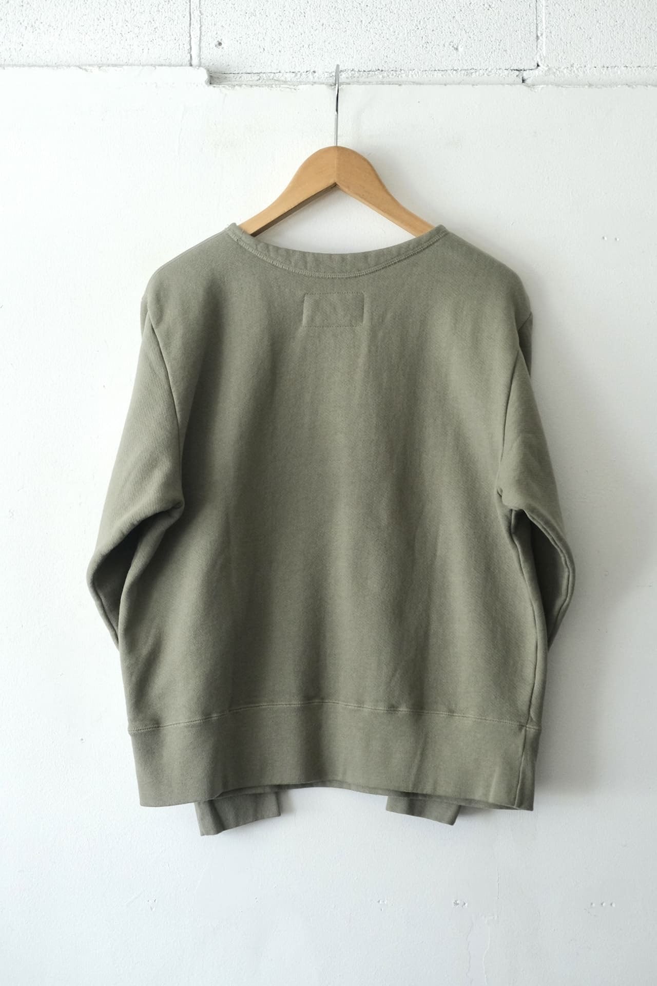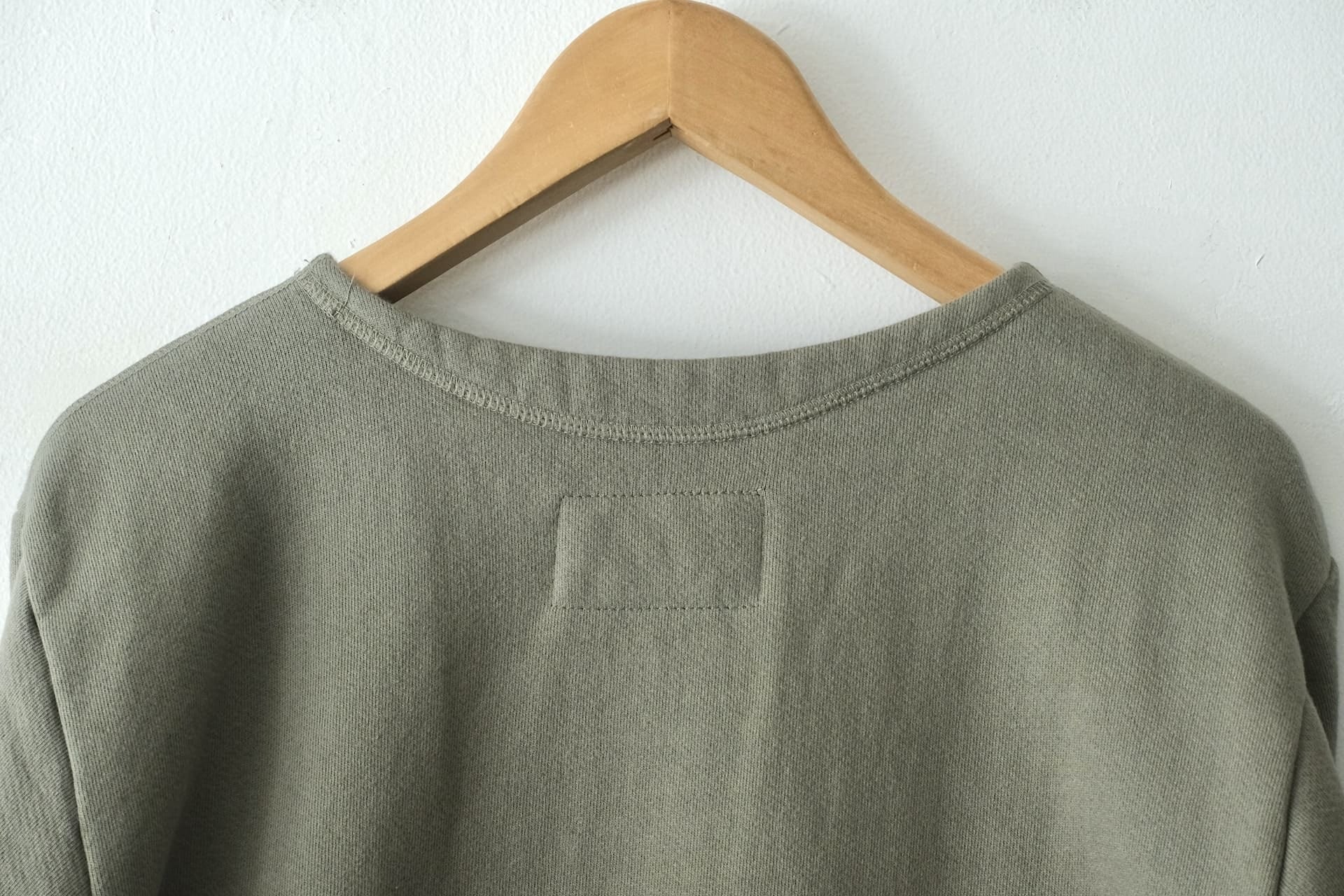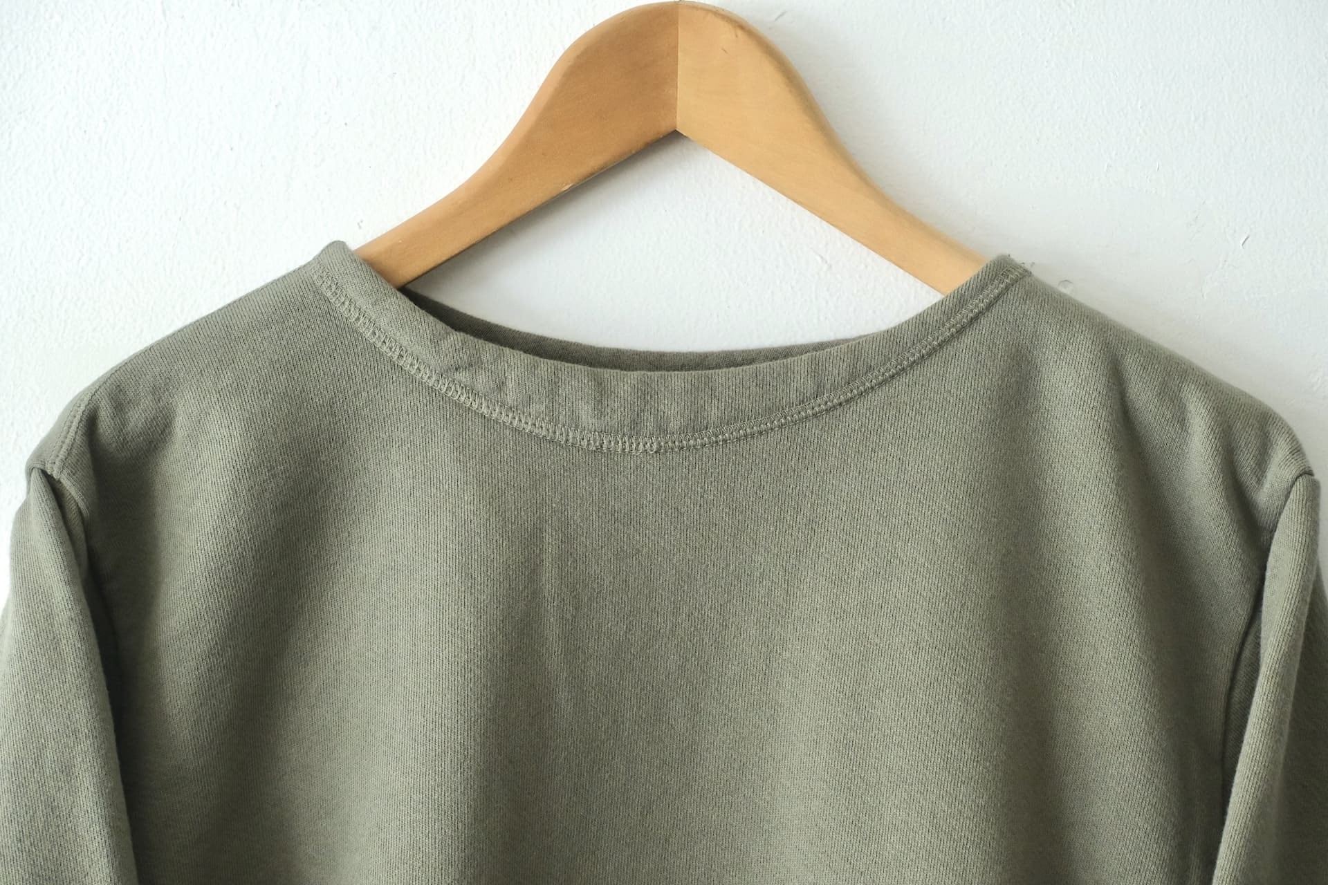 やや広めなネックと裾、袖口は太めなリブになっているのがポイントです。