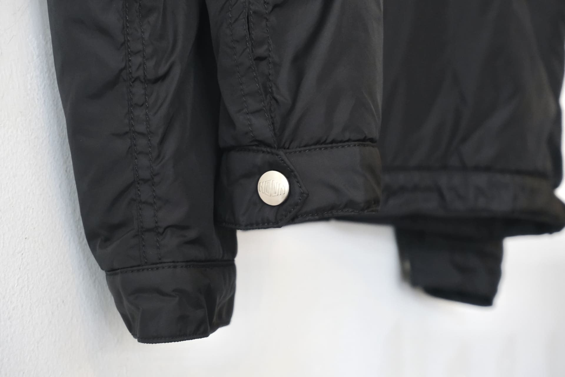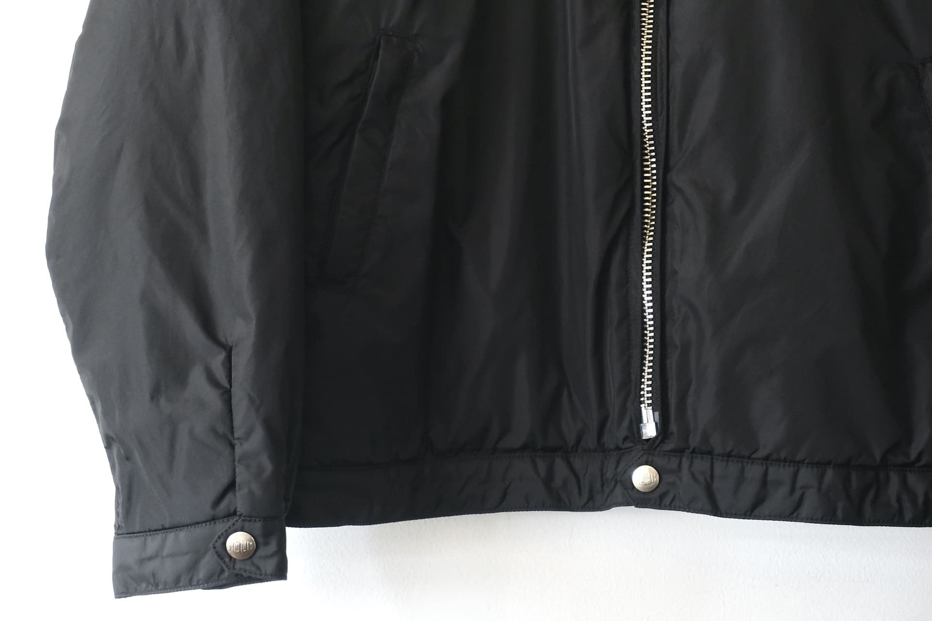 このジャケットは表地に少ししっとりとした質感のナイロン生地が使われ、程よいボリューム感の中綿が見頃から袖までしっかり入っています。