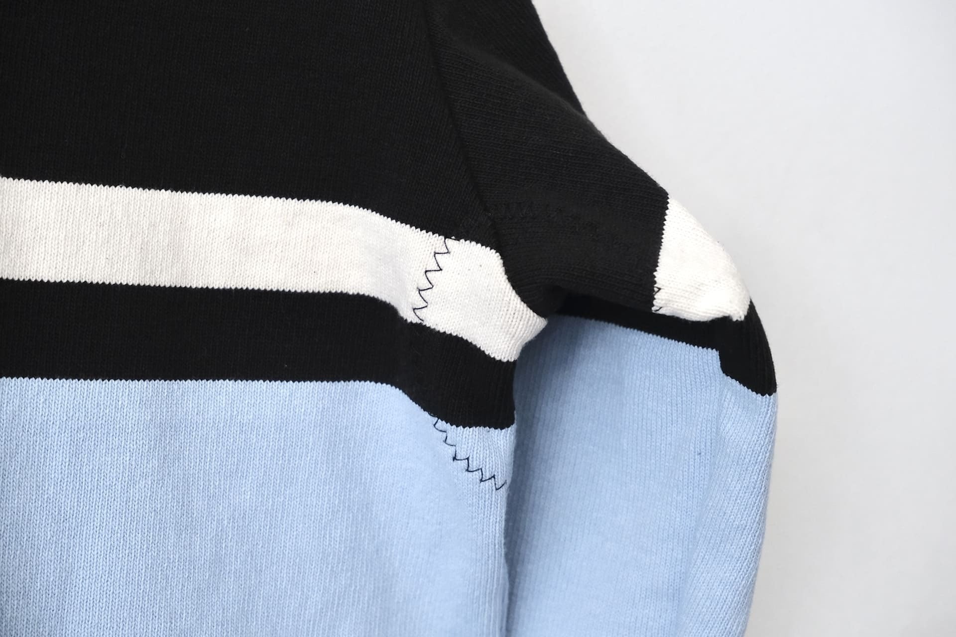 ボディのベースカラーはブラックで、中央の太ボーダーをパウダーブルー、上下の細ボーダーをアイボリーにして上品な雰囲気に仕上げています。