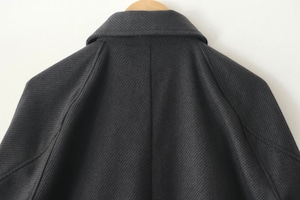 このコートはリサイクルウールなどを使用したオリジナルのツイル生地が使われていて、滑らかな風合いと保温性に優れています。
