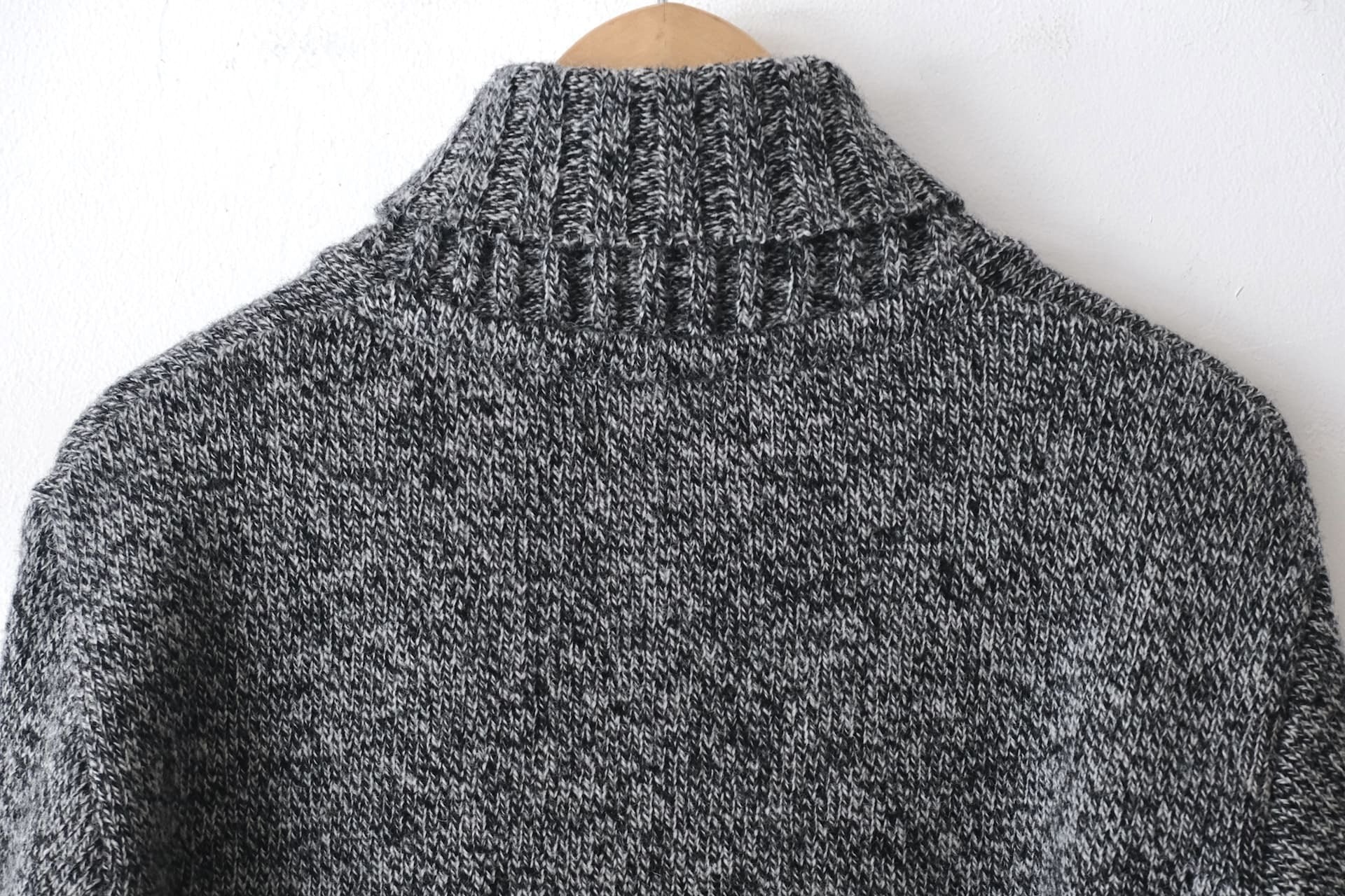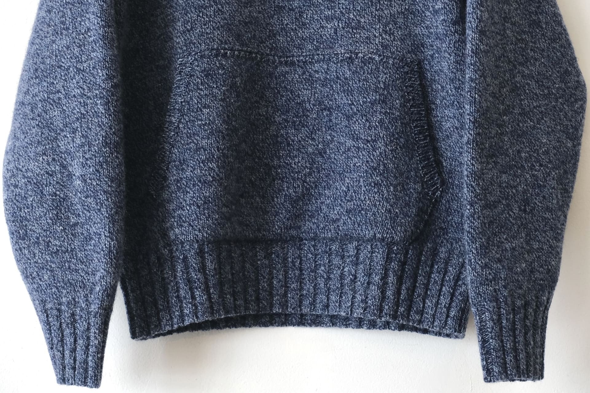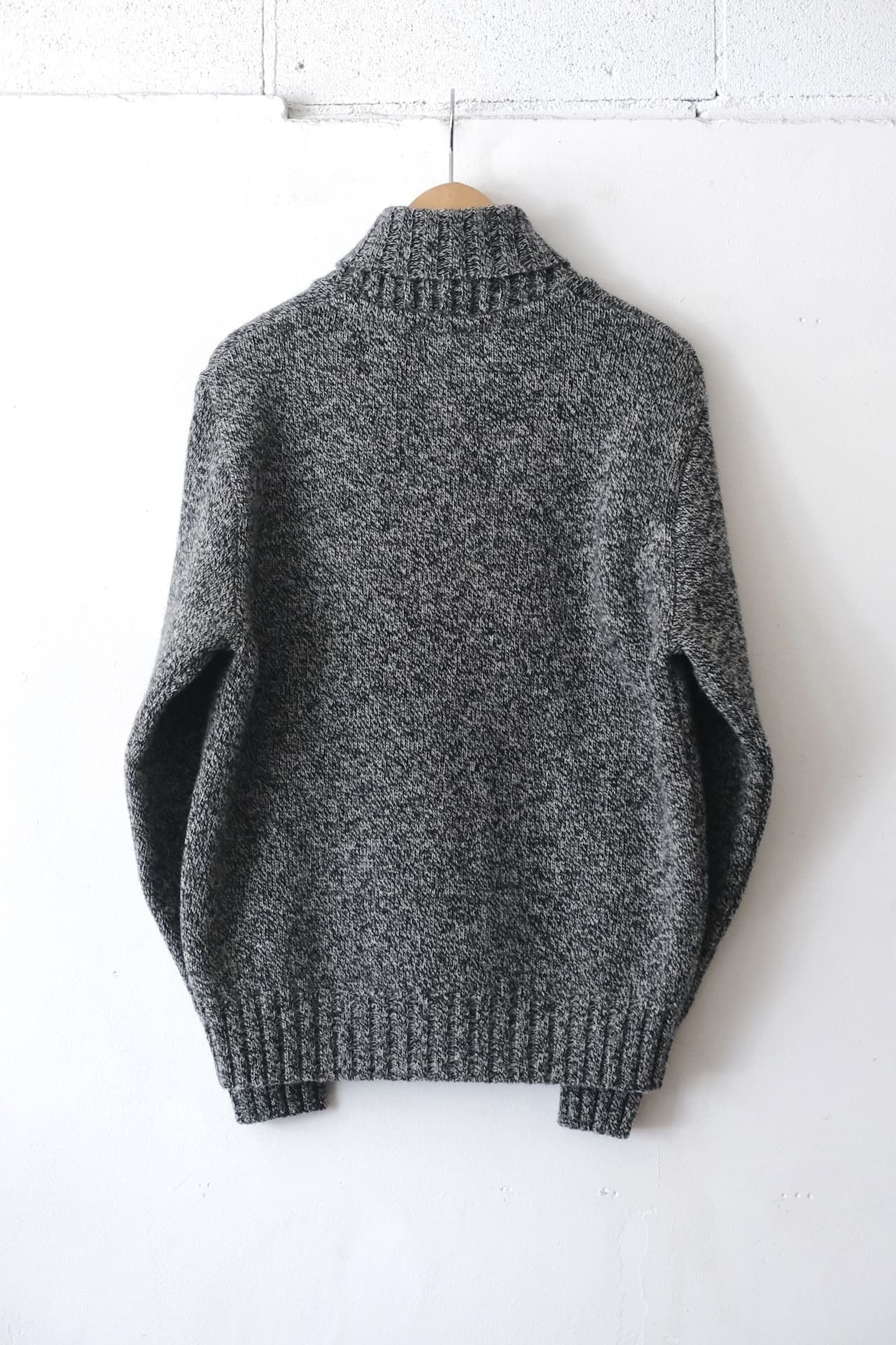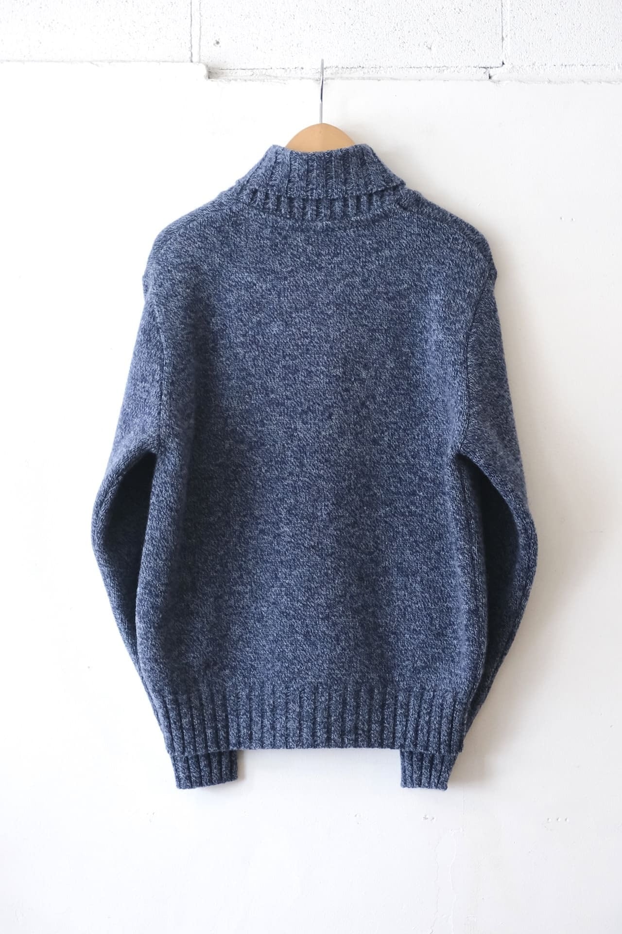 このセーターはシェットランドウールとメリノウールを混紡した糸で編み立て、見た目より非常に軽く保温と保湿性に優れています。