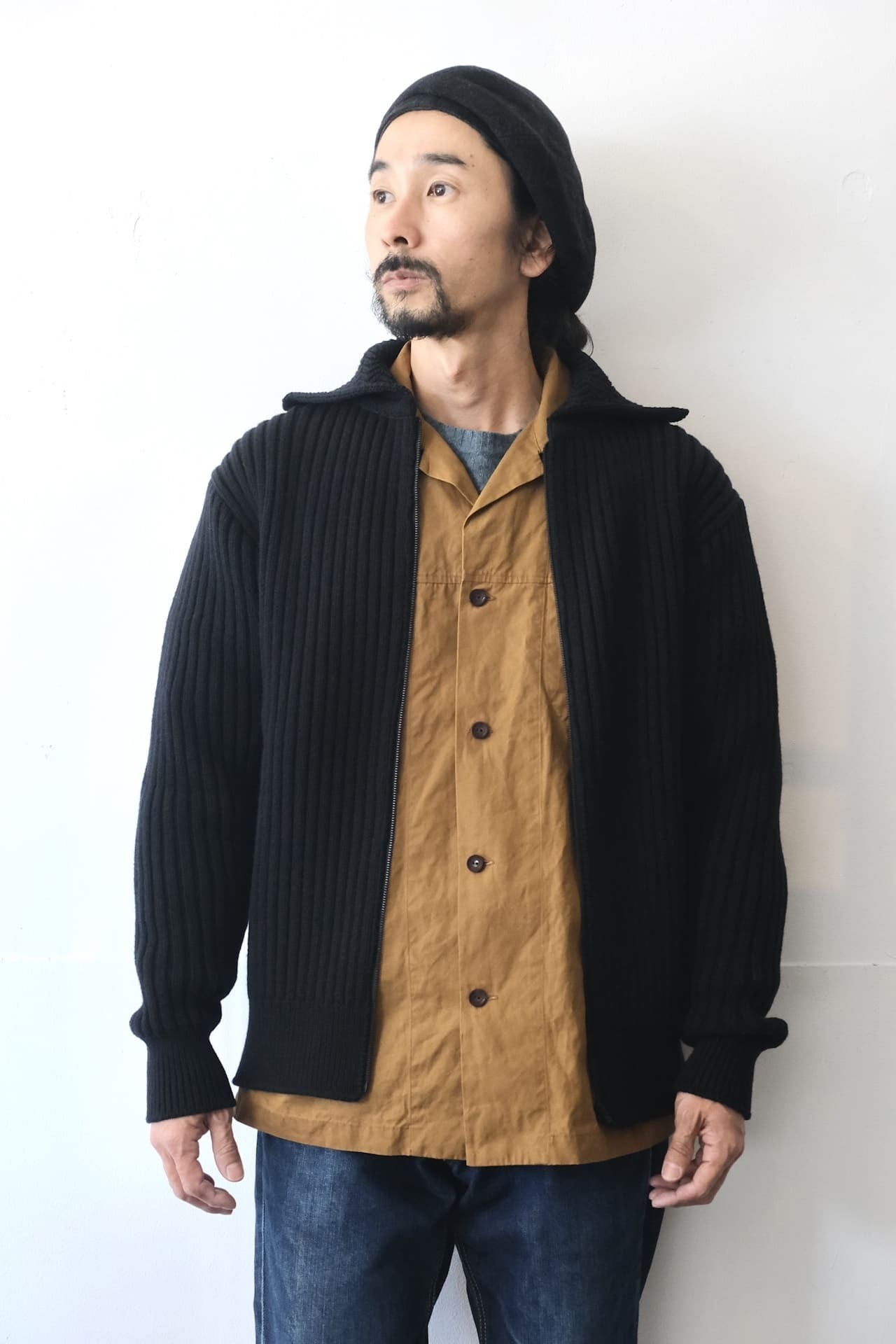 Crafted from premium Australian merino wool, it offers a smooth sheen, soft flexibility, and impressive resilience. The ribbed structure, oversized collar with a contrasting knit, and zip-front design add subtle yet distinctive character. With its substantial weight, it can easily replace a jacket, while the clean, simple silhouette makes it effortless to style. It carries a refined mood—perfect paired with tailored trousers.