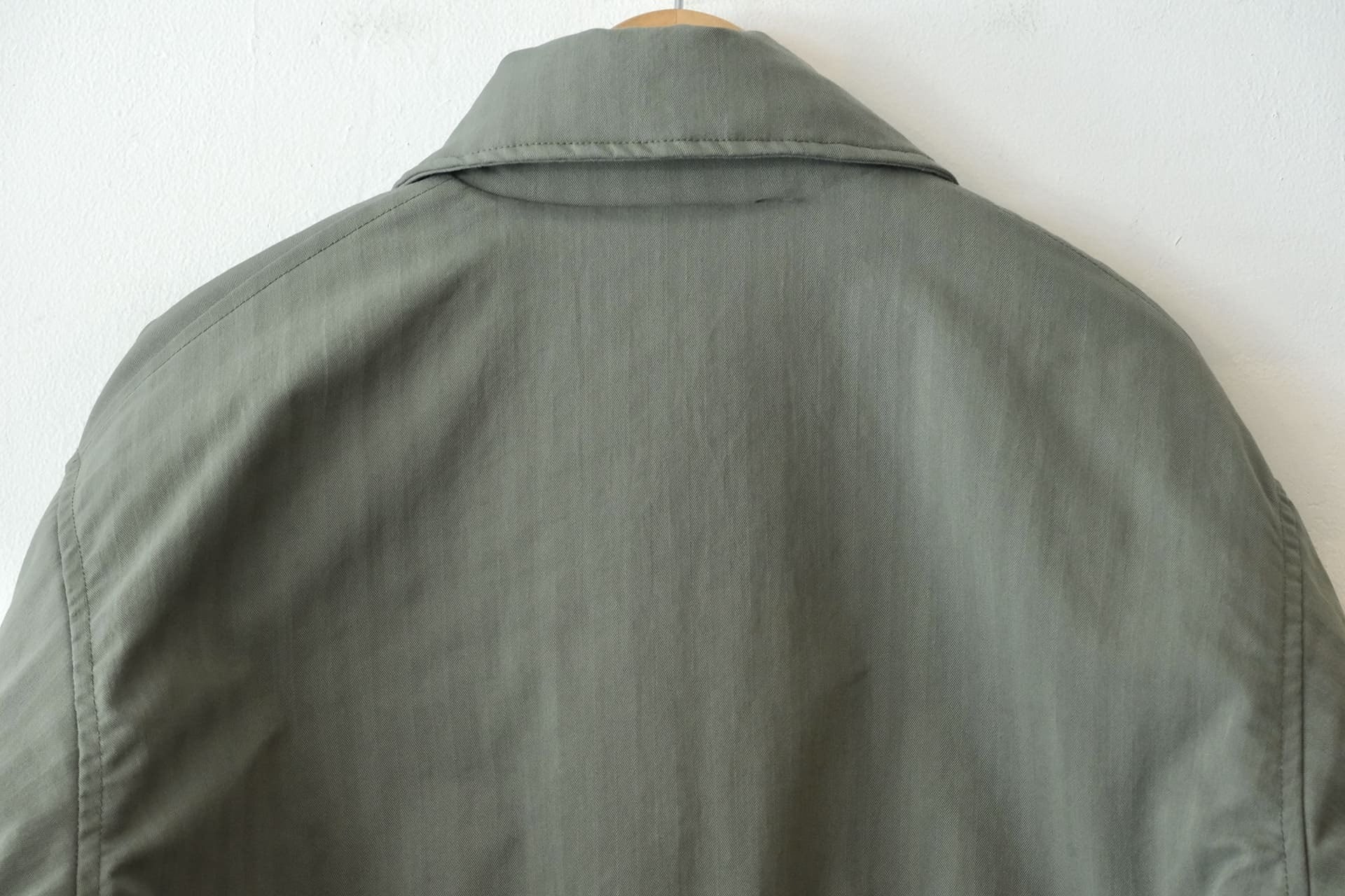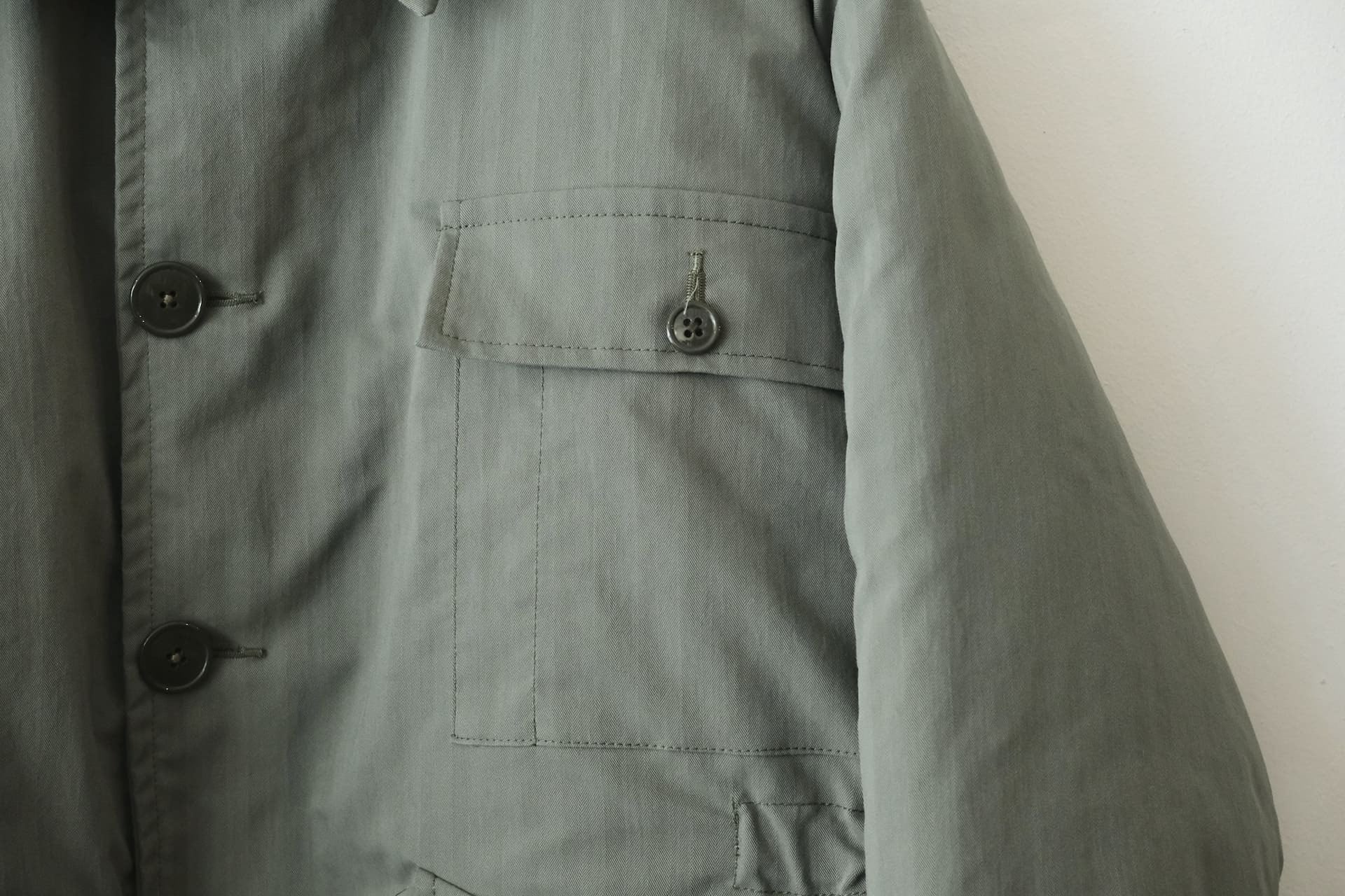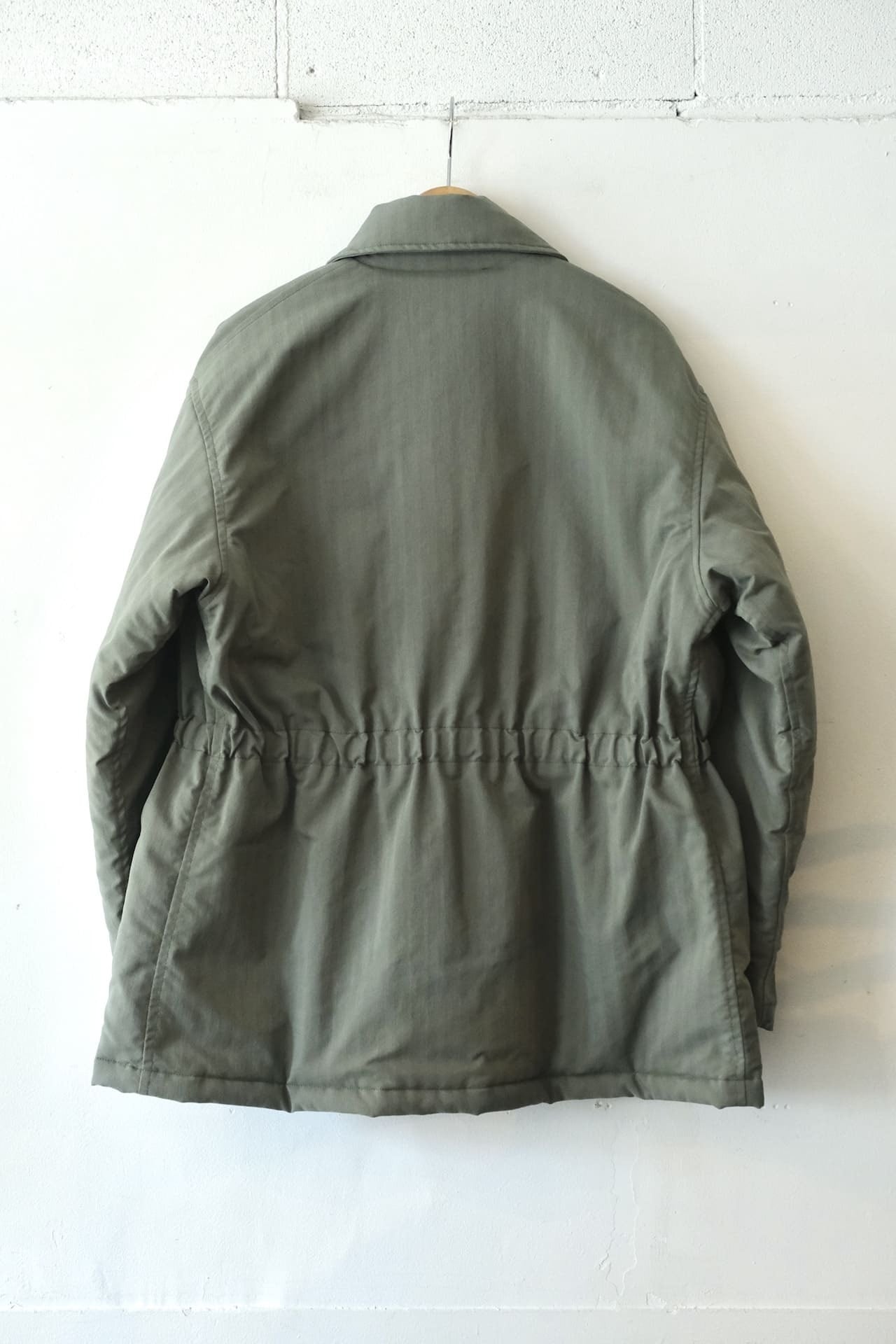 北極や南極の観察隊の中綿ジャケットをベースに作られていて、フロントの大きなフラップ付きポケットや袖内側のリブ仕様、背面の絞られたところもポイントです。