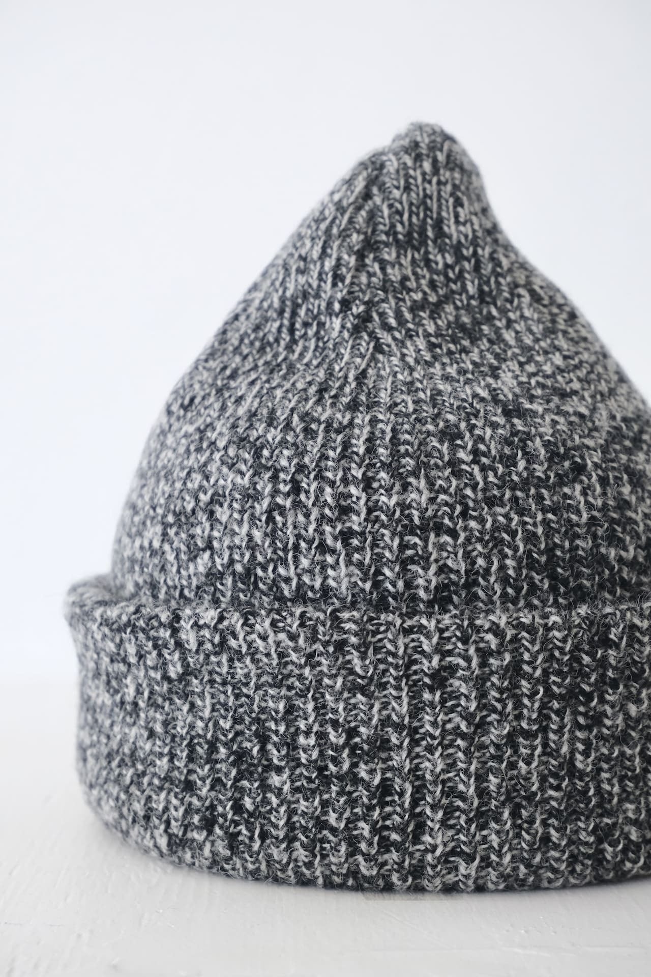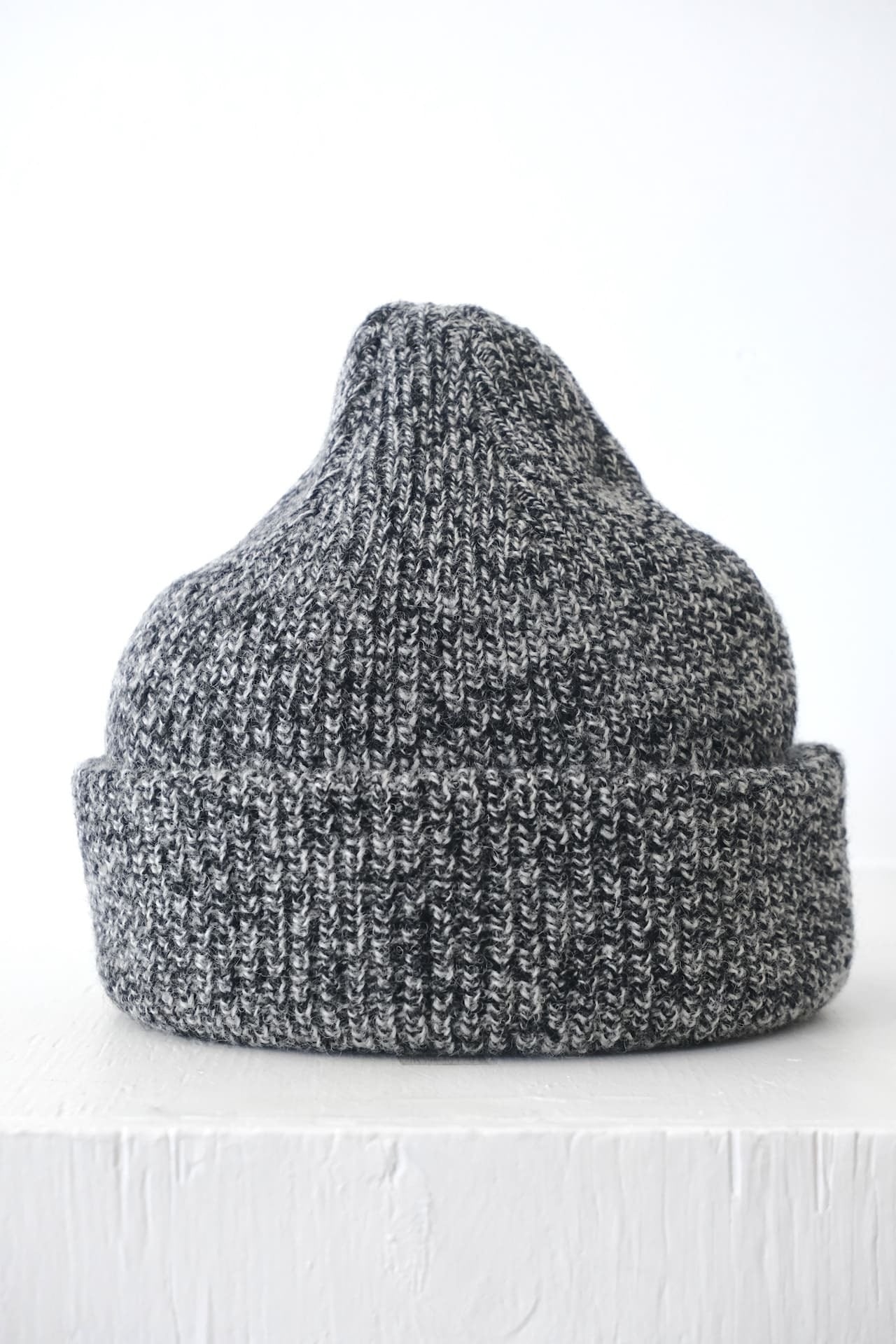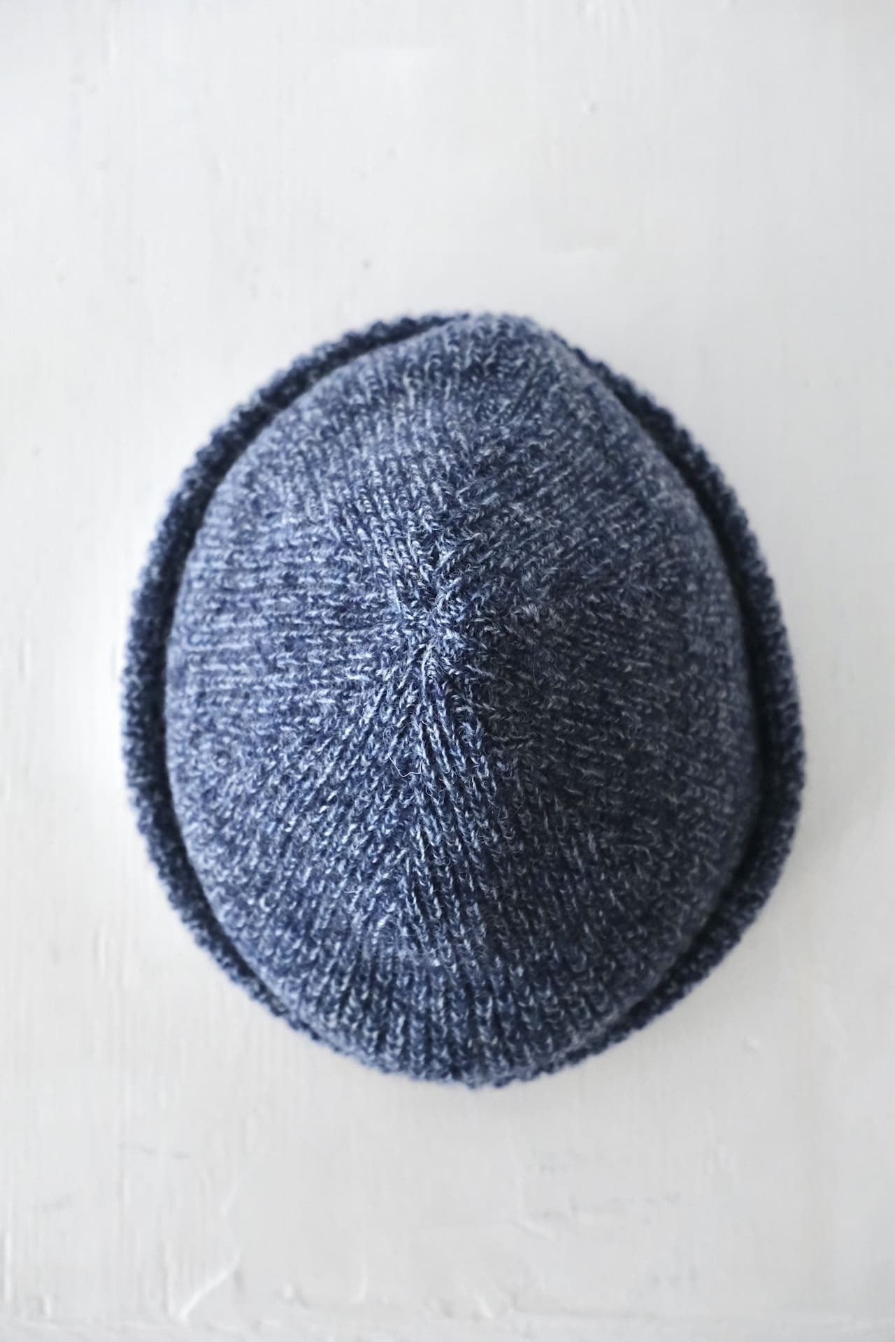 このニットキャップはシェットランドウールとメリノウールを混紡した糸で編み立て、見た目より非常に軽く保温と保湿性に優れています。