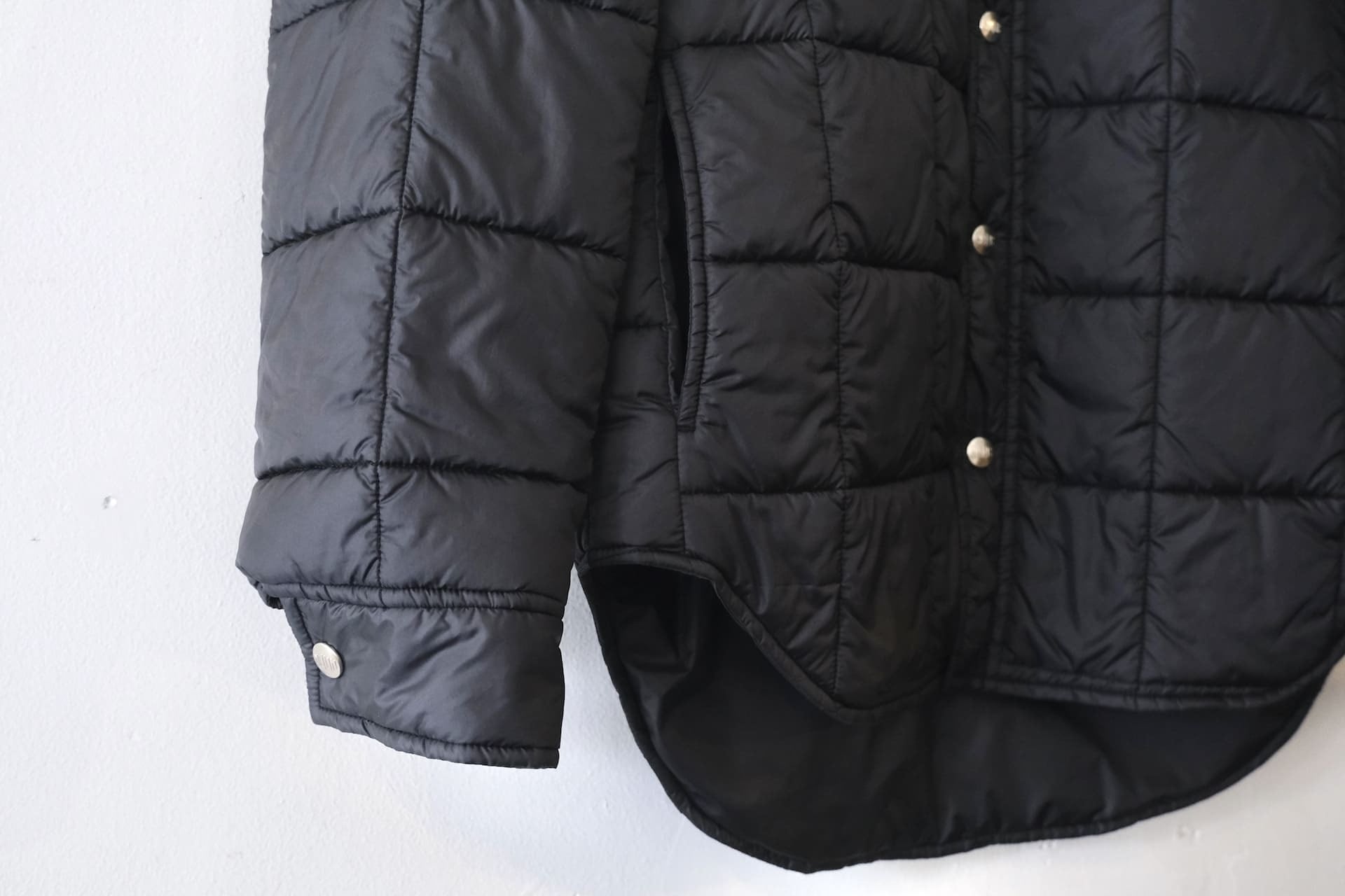 このシャツは表地に柔らかいナイロン生地を使い、中綿が程よく入っていて冬場にはアウターとしてはもちろんコートのインナーとしても活躍してくれます。