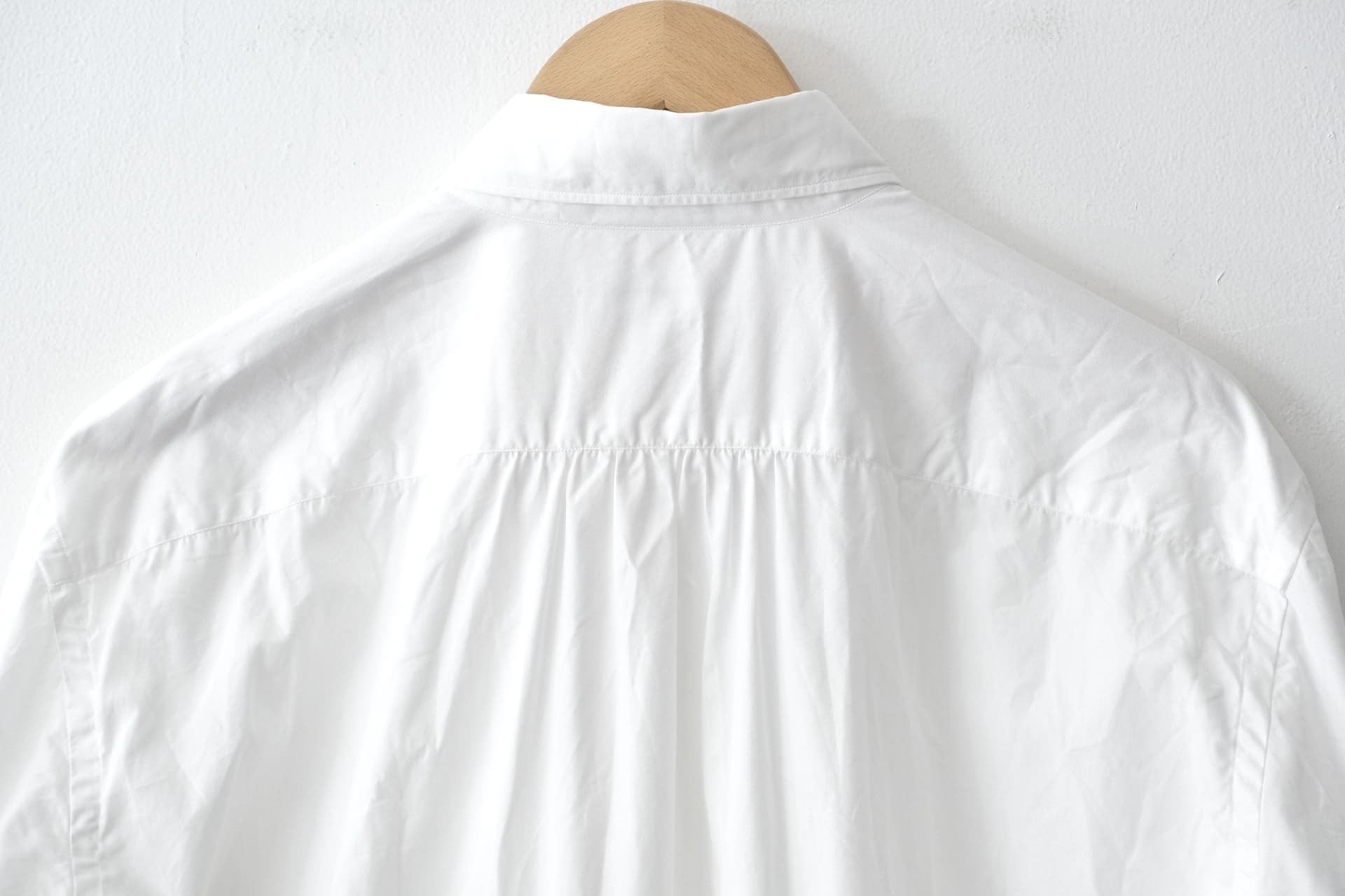 ゆったりとしたシルエットでリラックスして着ていただけ、細かいステッチワークや背中側のヨーク下からのギャザーもポイントです。