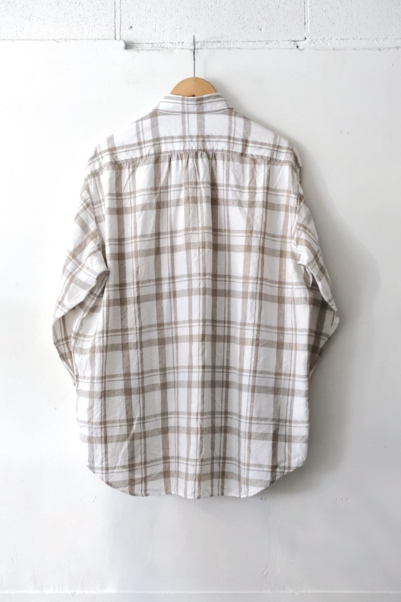 リラックスしたゆったりシルエットで、細かいステッチワークや背中側のヨーク下からのギャザーもポイントです。