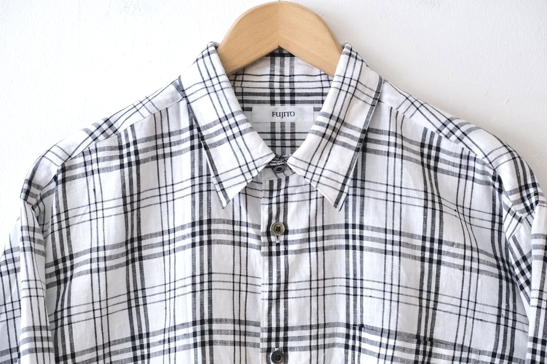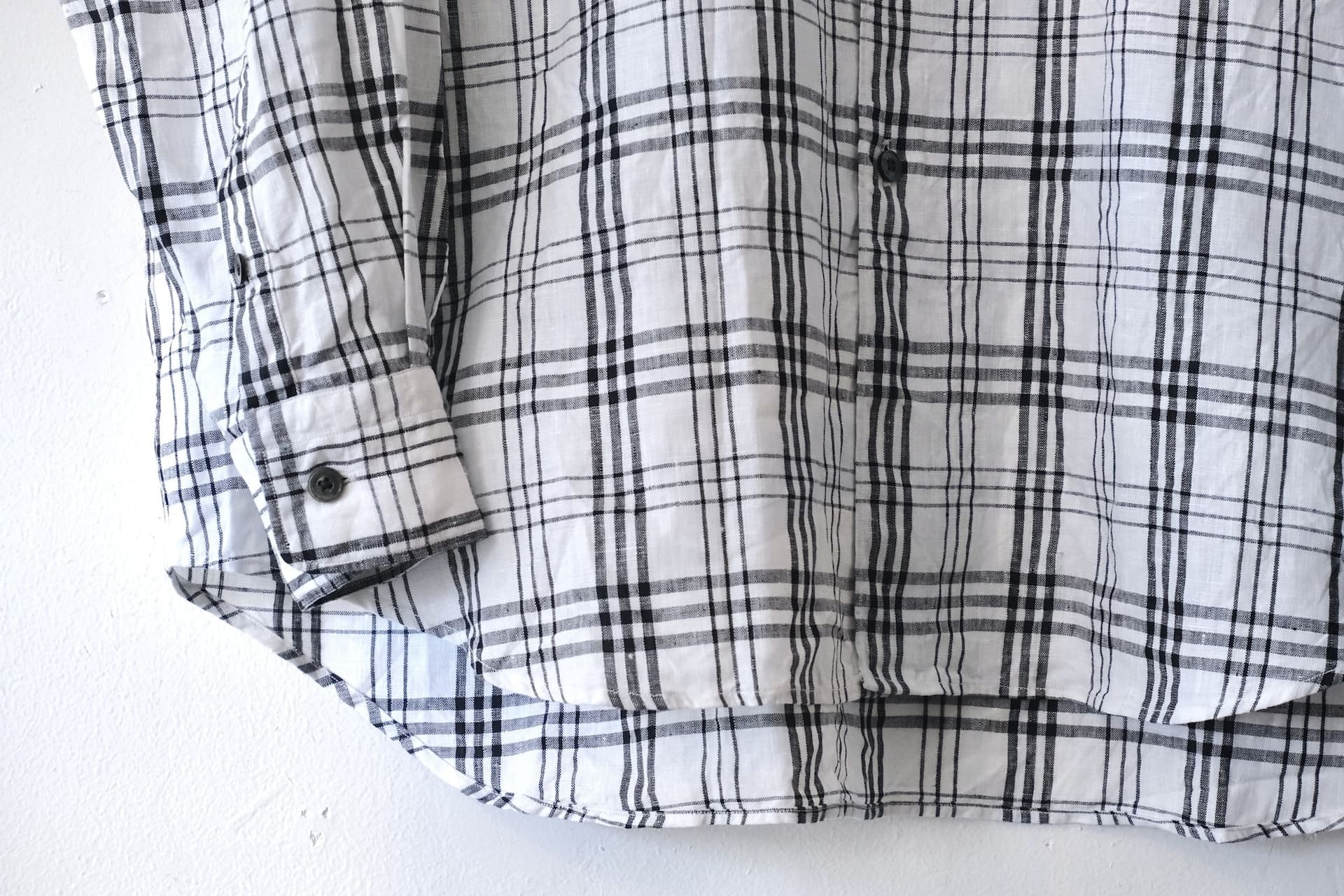 このシャツは、軽くて清涼感のあるリネン100%のチェック生地が使われています。