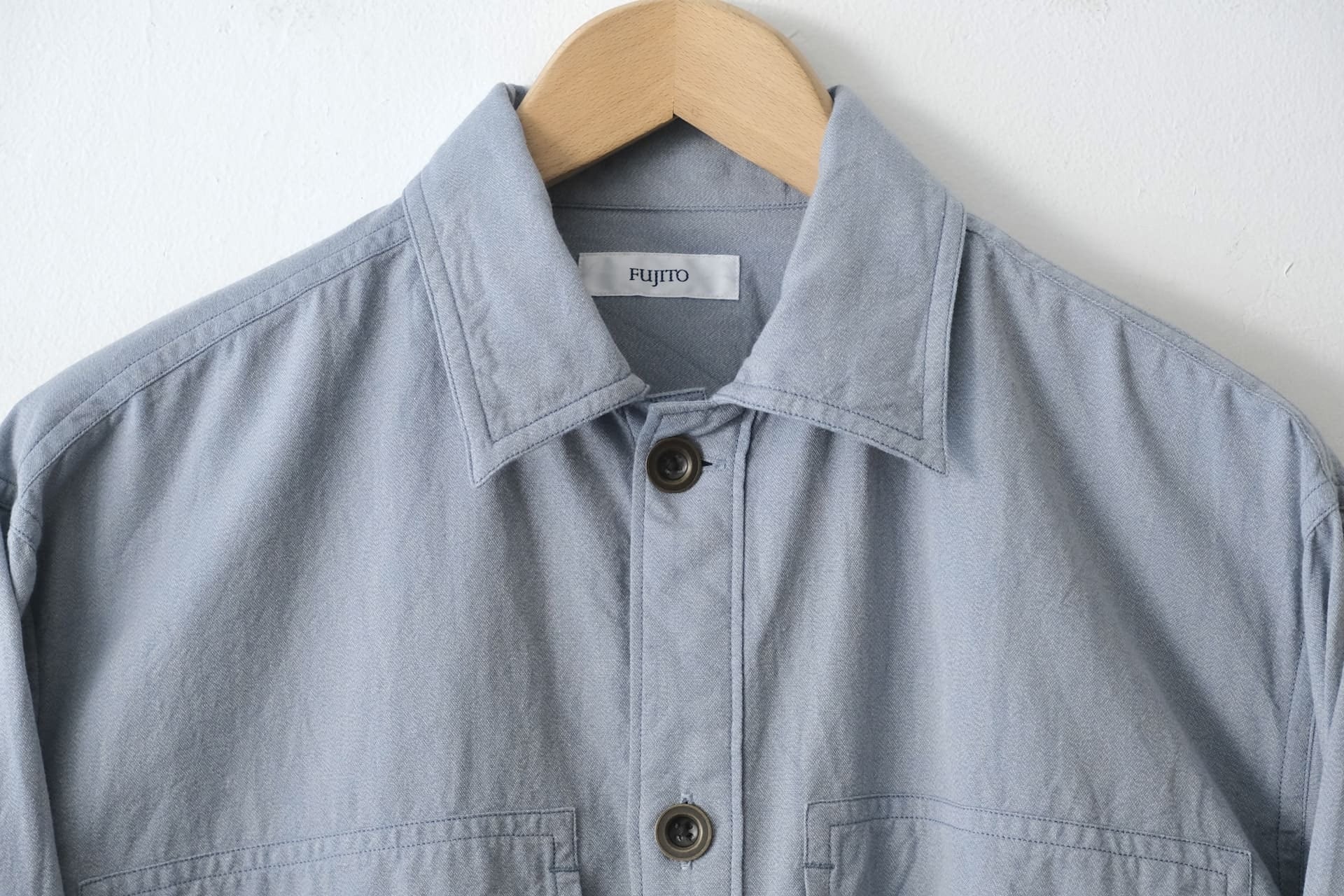 このシャツは、コットン100%の表情があるセルビッチシャンブレー生地を使っています。