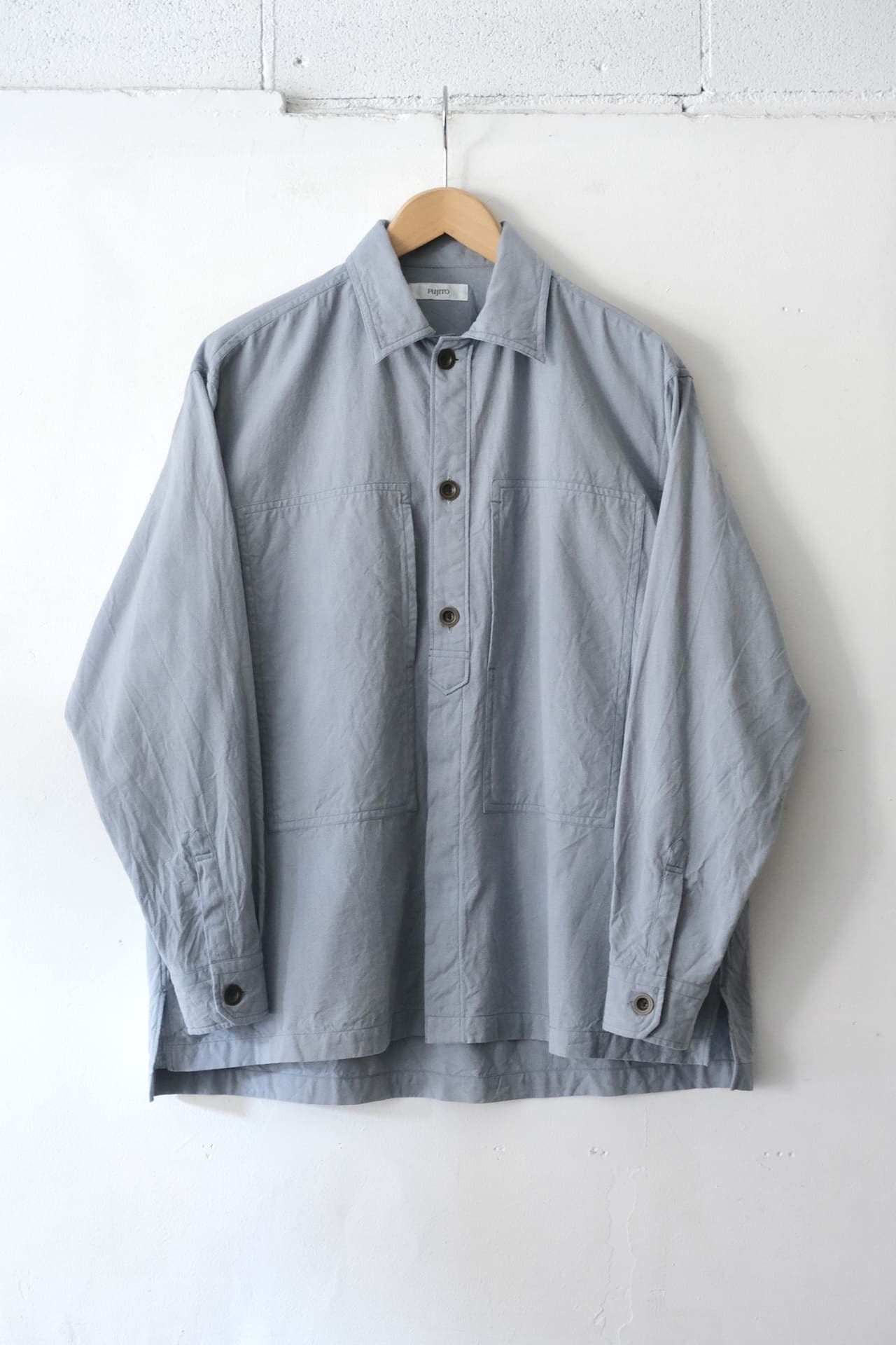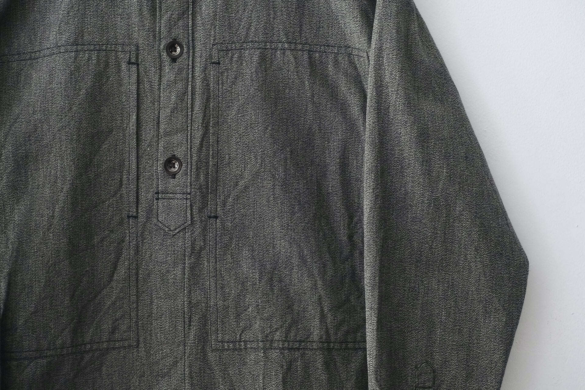 ゆったりとしたボックスシルエットなので、シャツとしてはもちろんジャケットのように羽織りとしても着ていただけます。