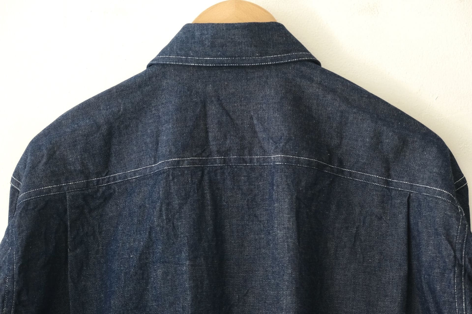 このシャツは、程よい厚みの8オンスのデニム生地を使用しています。