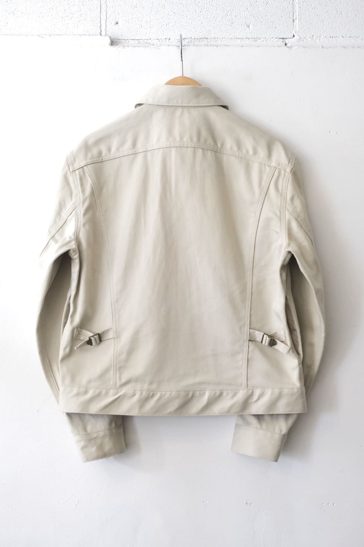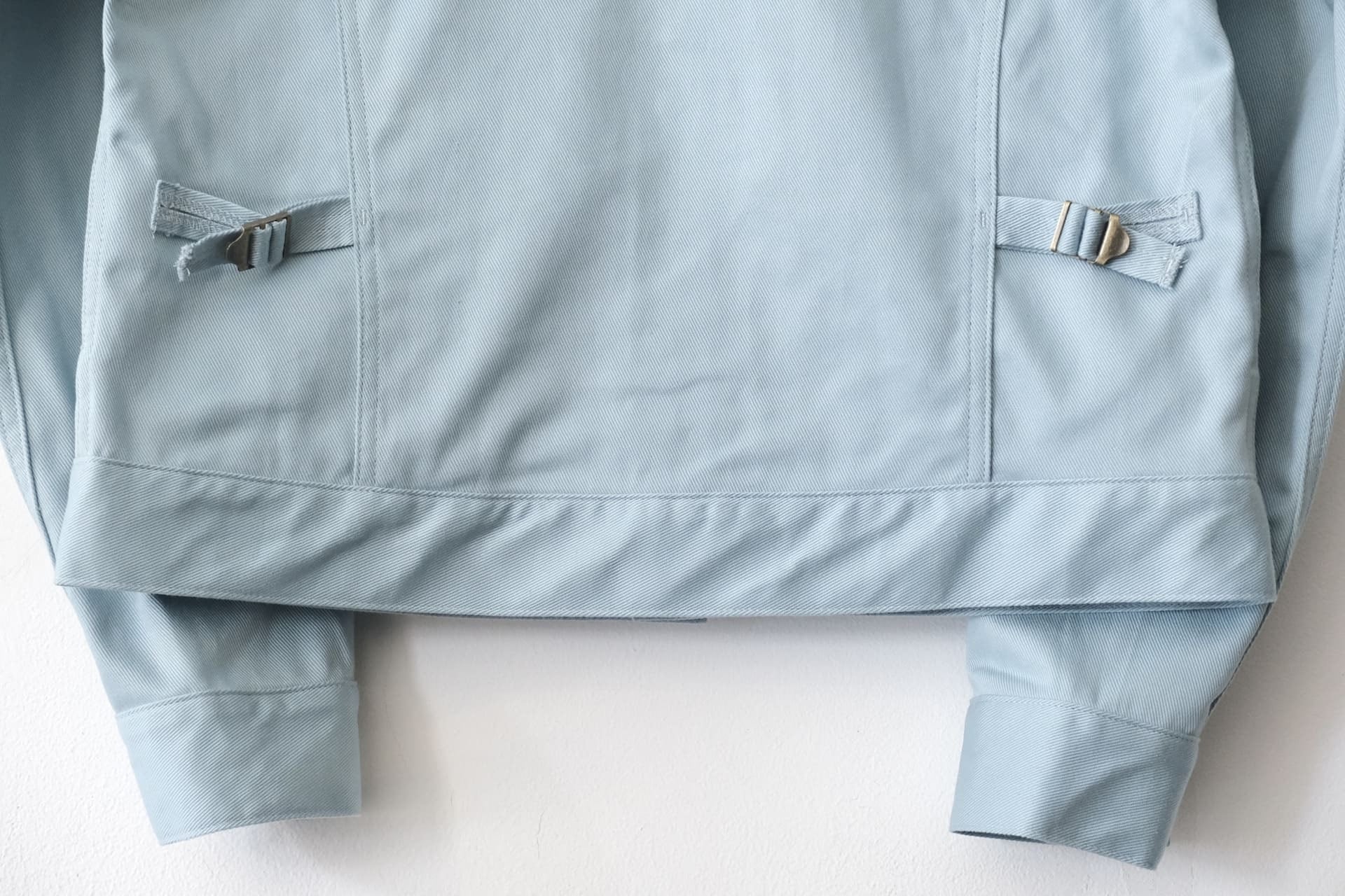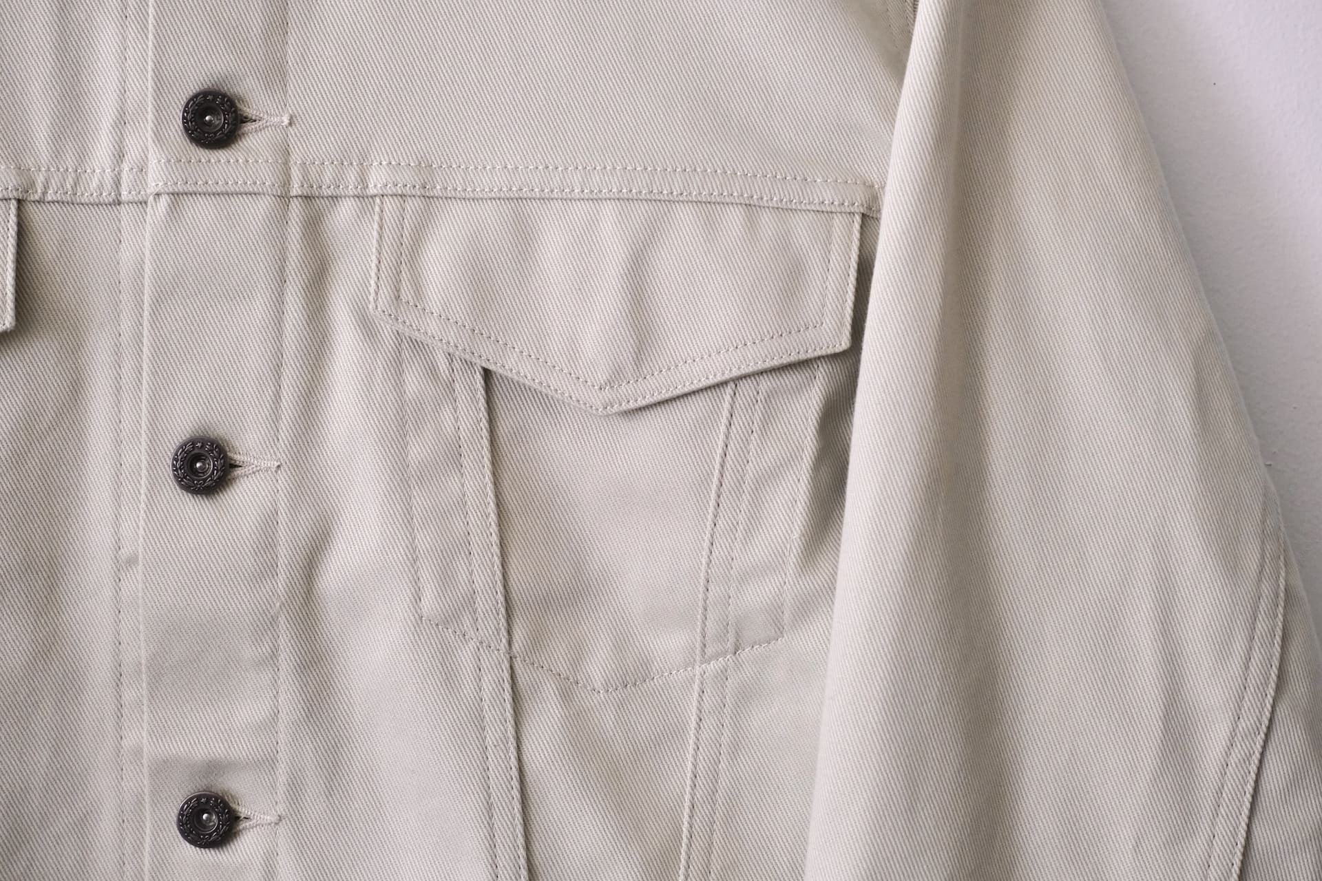 このジャケットは、柔らかく丈夫なカツラギ生地を使ったショート丈のデニムジャケットタイプになります。
