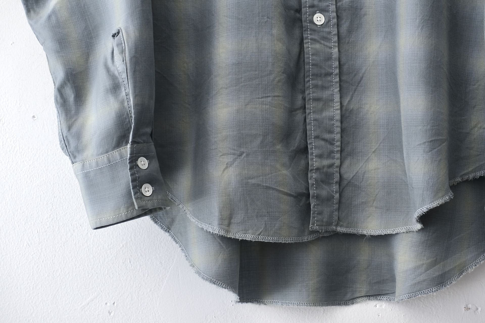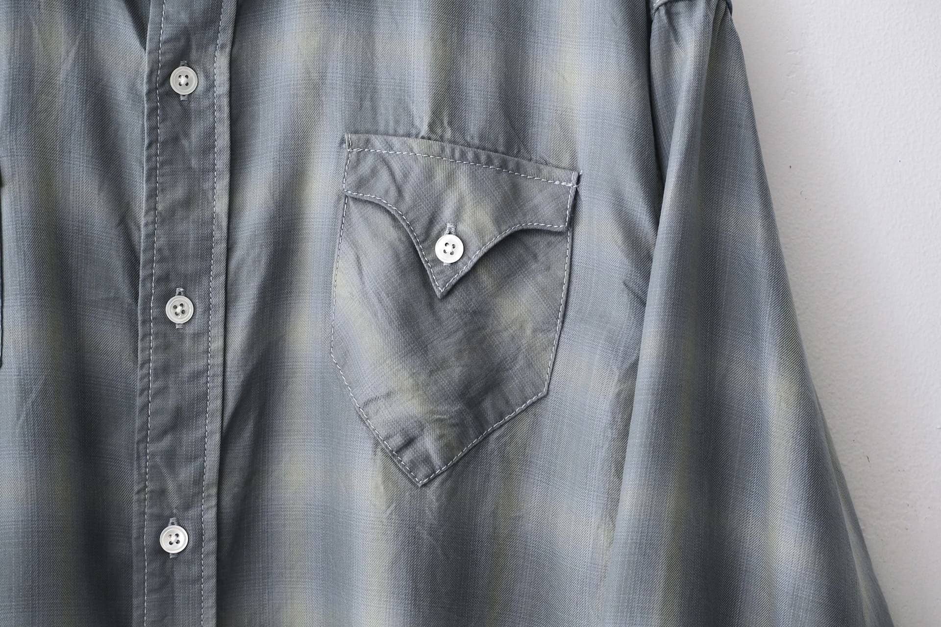 50年代のウエスタンシャツからディテールを取っていて、胸ポケットはウエスタンらしいデザインのフラップが付き裾はあえてロック処理で仕上げています。