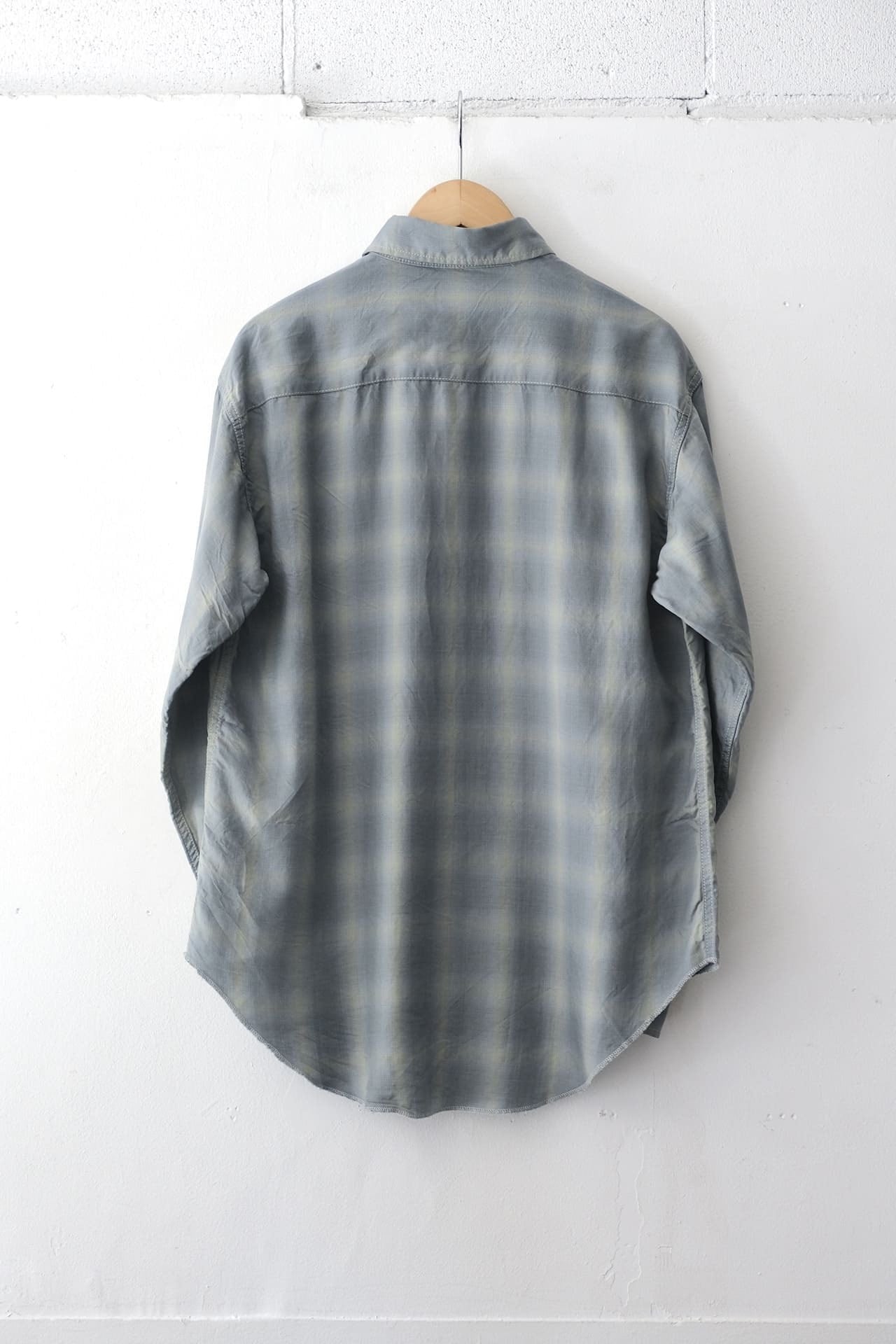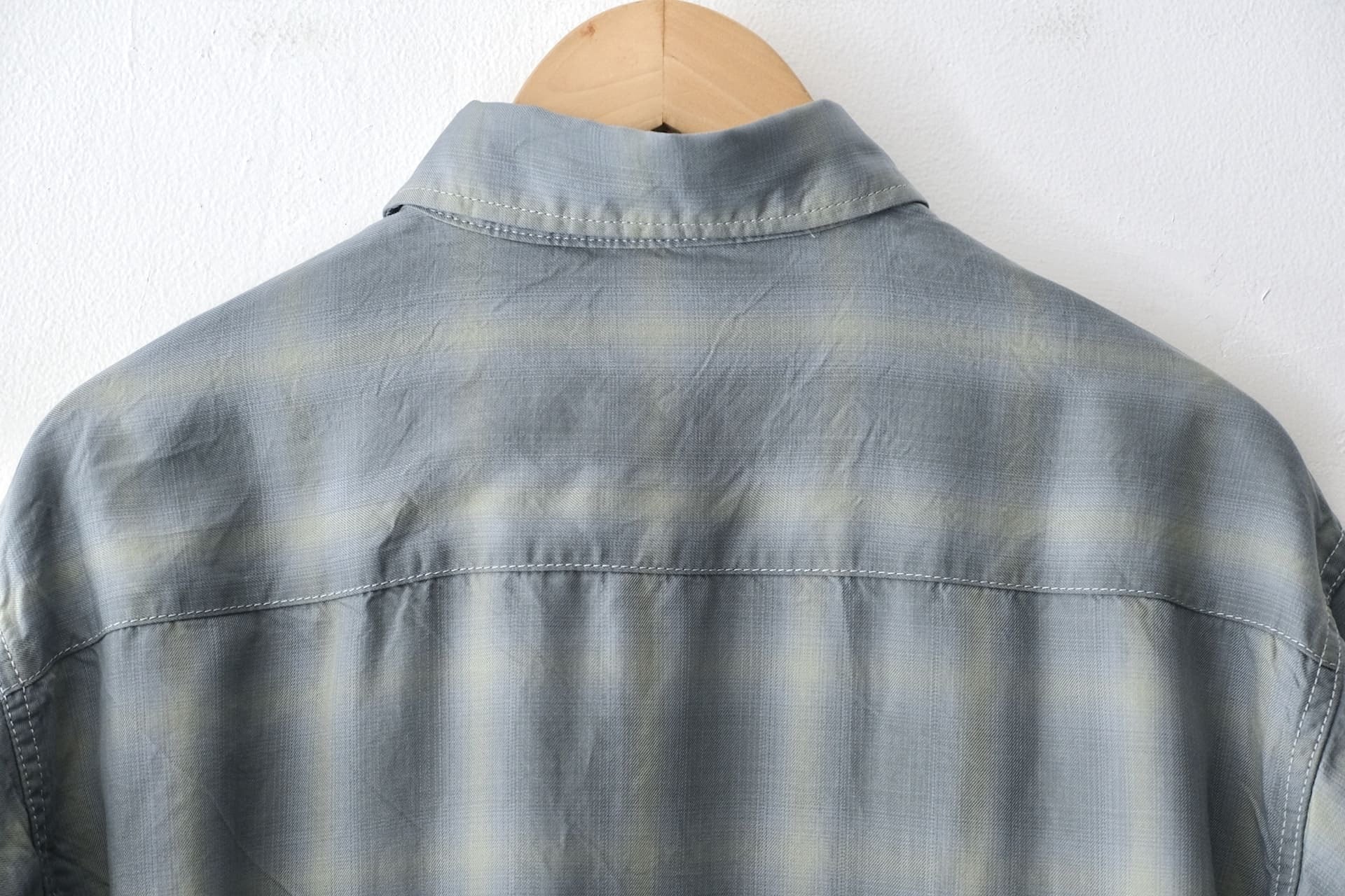 このシャツは、滑らかな肌触りで光沢感があるオンブレチェック柄のテンセル素材が使われています。