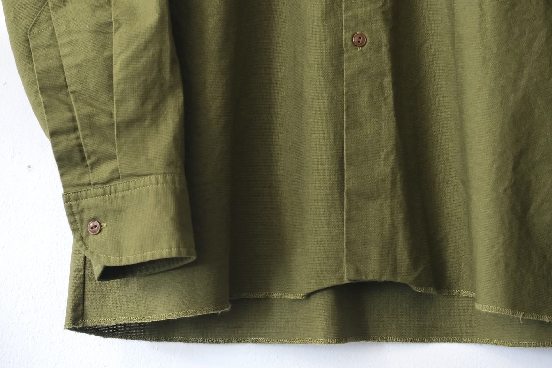 パーツのほとんどがインターロック縫いになっていたり、袖の剣ボロや衿などシンプルなデザインながら独特な仕様となっています。
