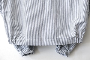 このブルゾンは、ブルーのストライプにインディゴの糸を使ったコットンとリネンのオリジナルシアサッカー素材が使われています。