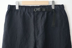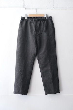 このパンツは、シワ感のあるリネンとウールの薄手でサラッとした少しドライな肌触りの素材を使っています。