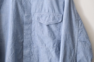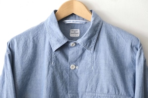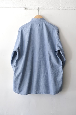 このシャツは、少しサラッとした生地感のコットン100%シャンブレー生地が使われています。