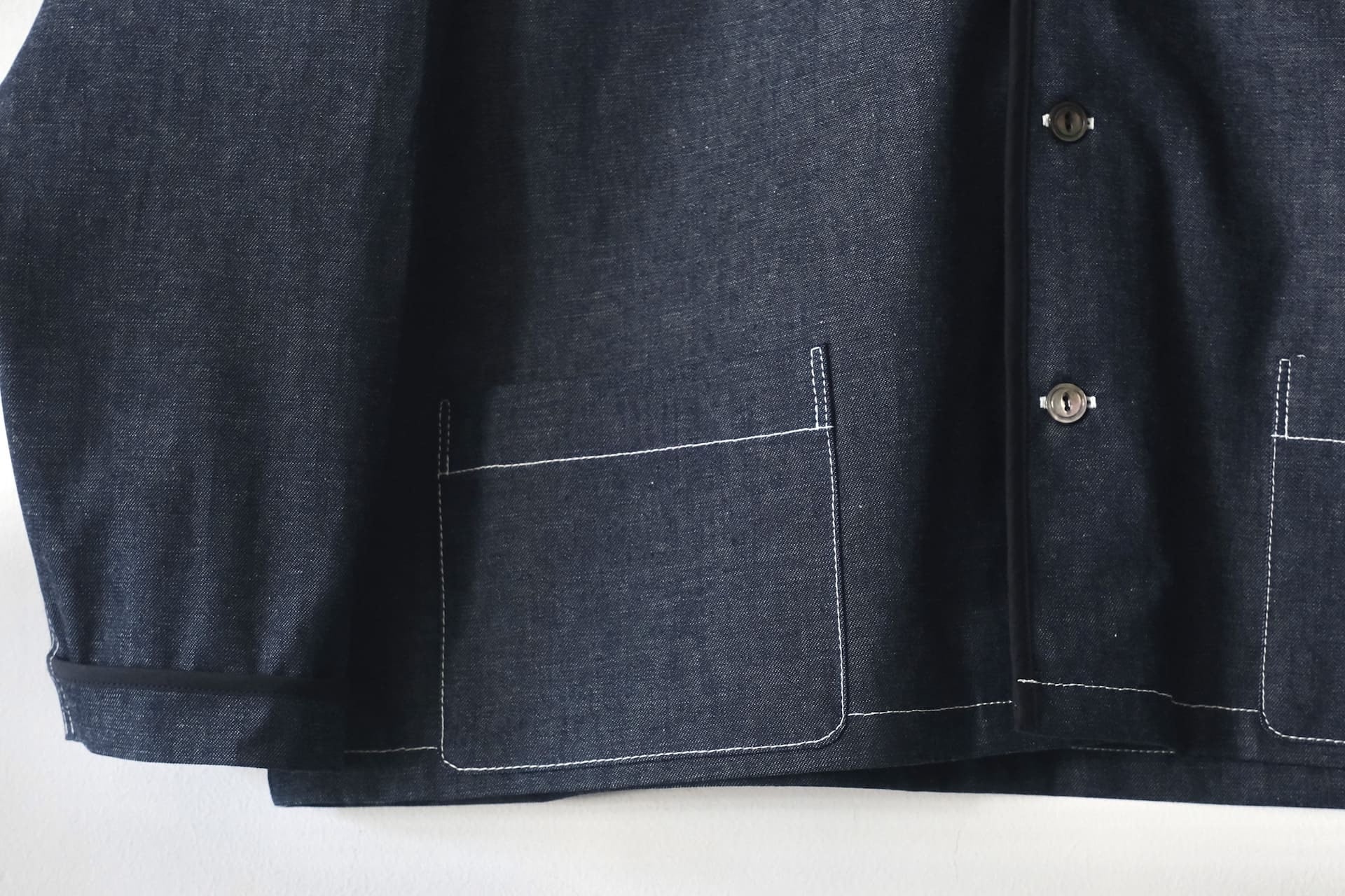 前立てや袖口などのパイピングやポケット、丸みがある衿の形が特徴的で、1枚で着ても存在感があります。