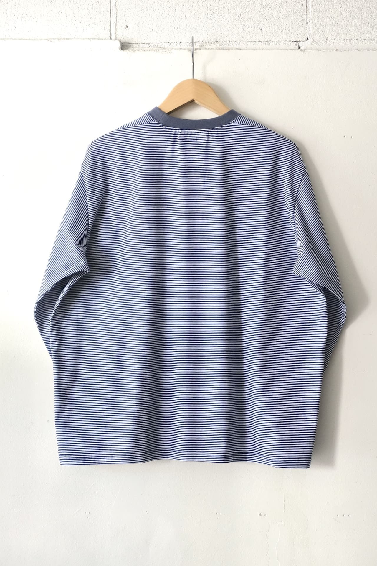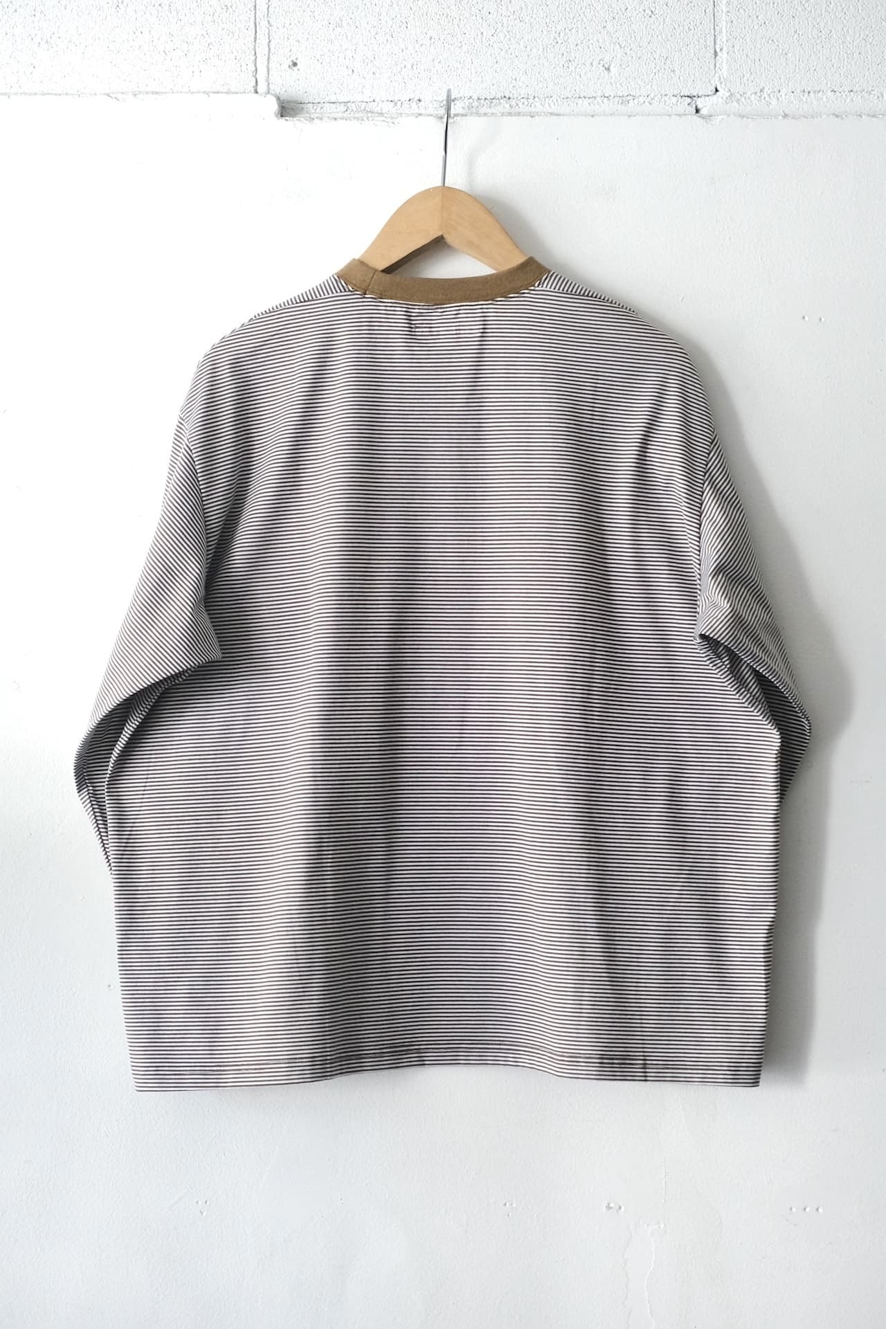 このL/S Tシャツは、滑らかな肌触りで少しハリ感があるコットン100%の素材を使っています。