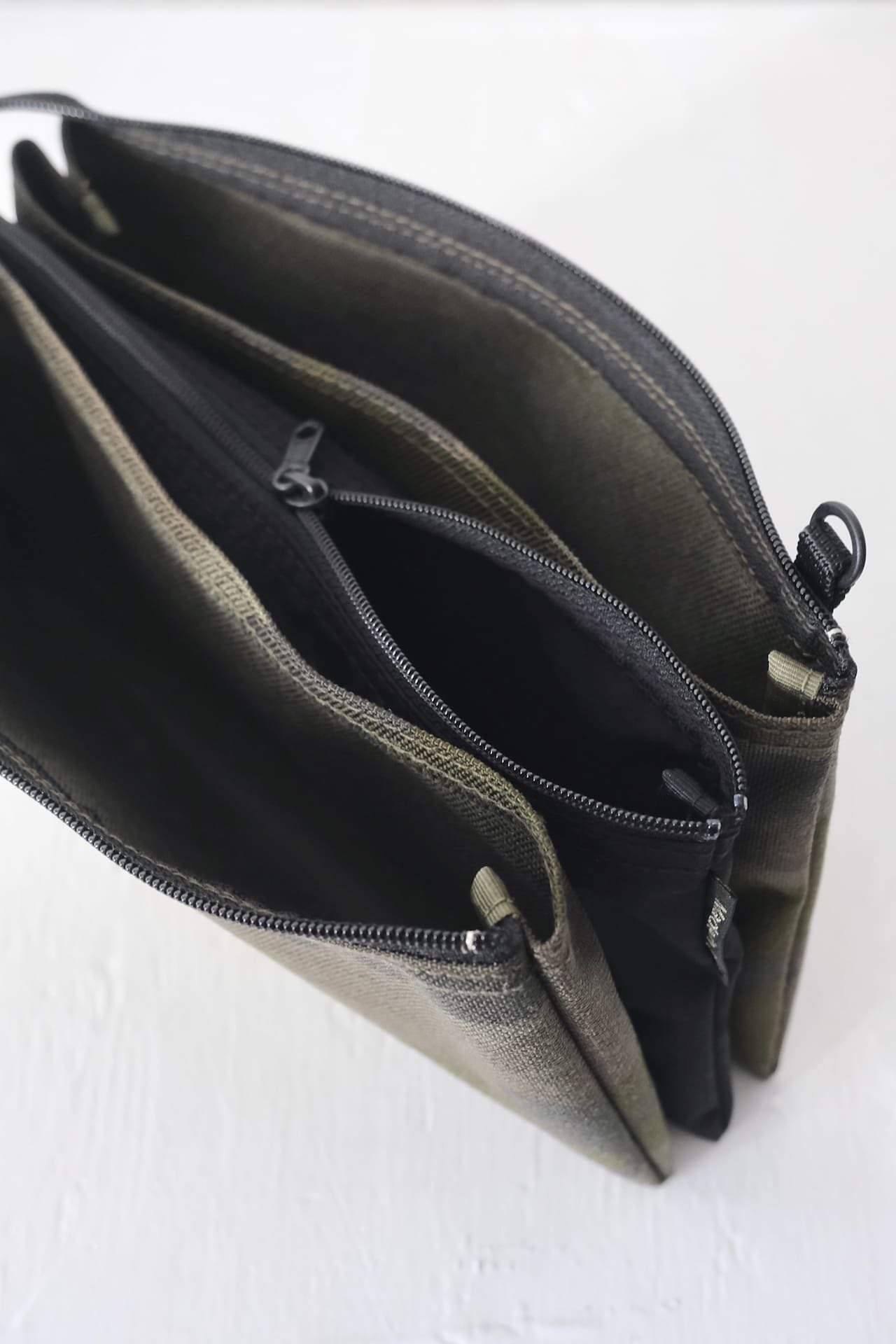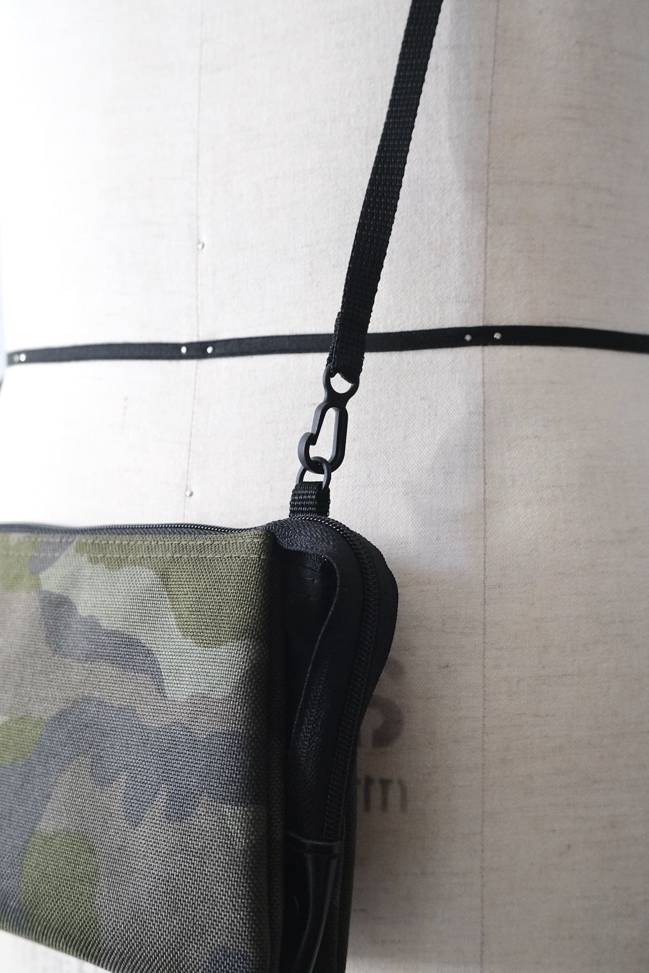このポーチは、迷彩柄のコーデュラナイロン素材を使っています。