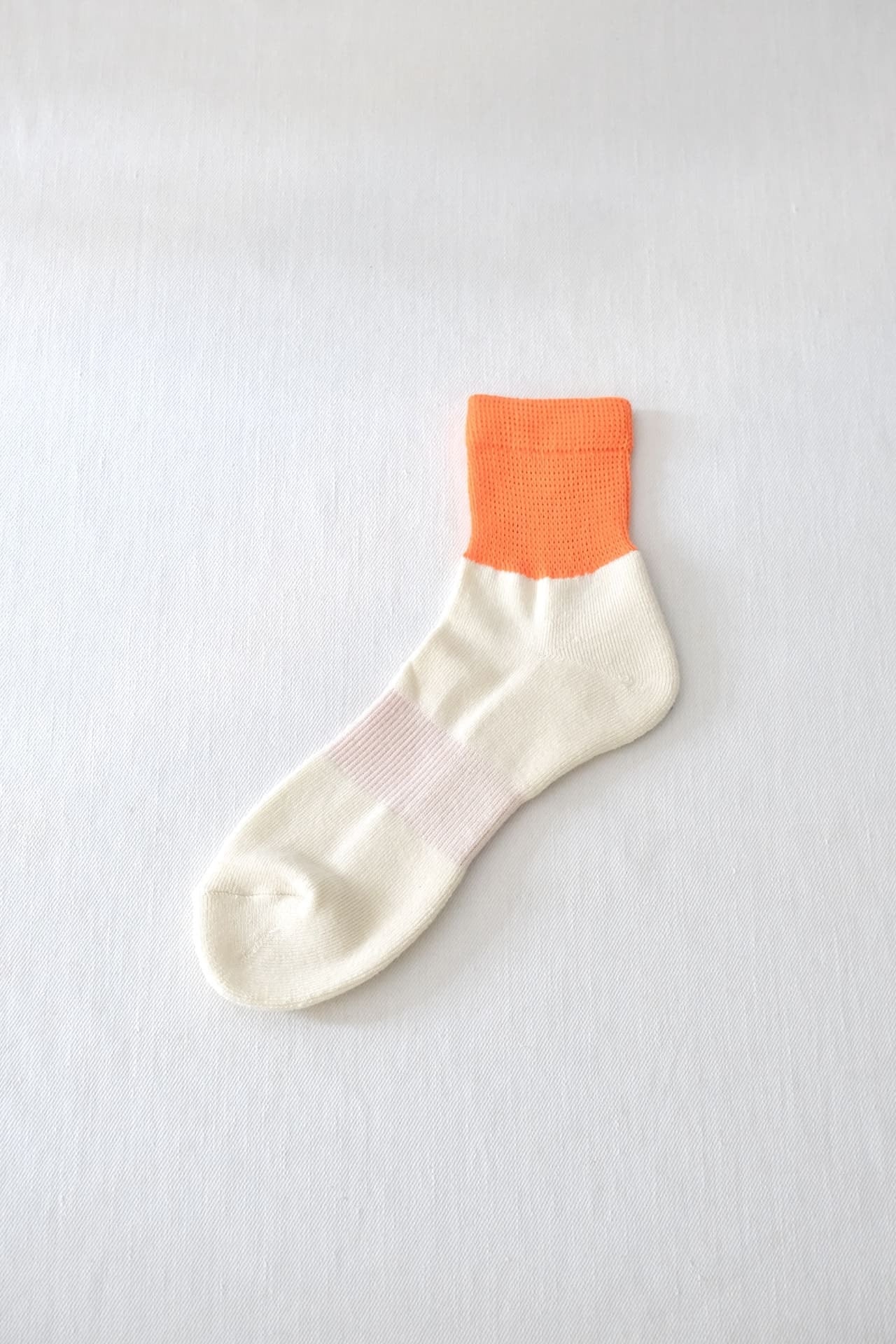 ネオンカラーとアイボリーの切り替えが、ショーツや丈が少し短めなパンツなどと合わせた時にアクセントになりオススメです。