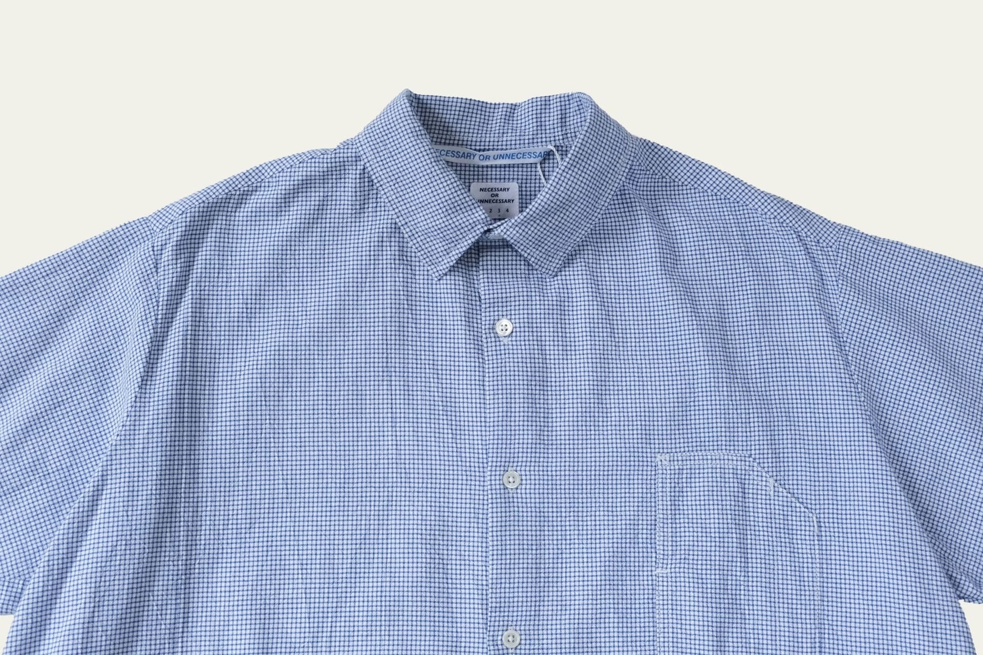 細かいブルーのチェック柄が爽やかで、肌離れが良い生地感なので暑い夏でも着やすくオススメです。