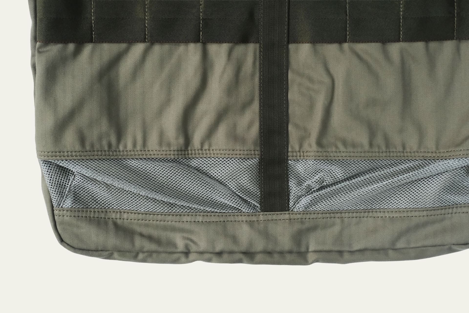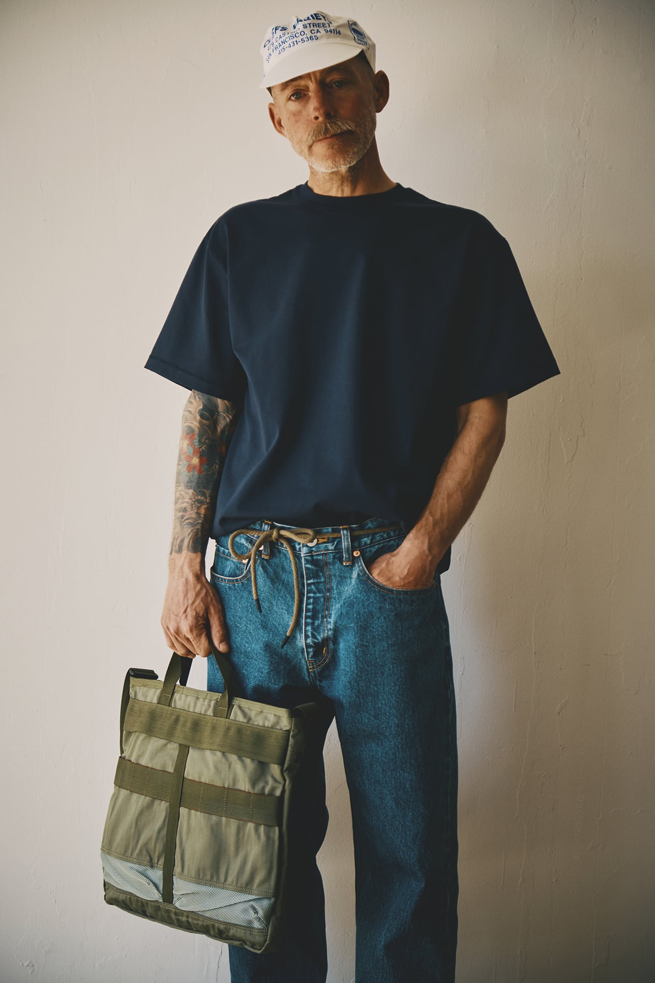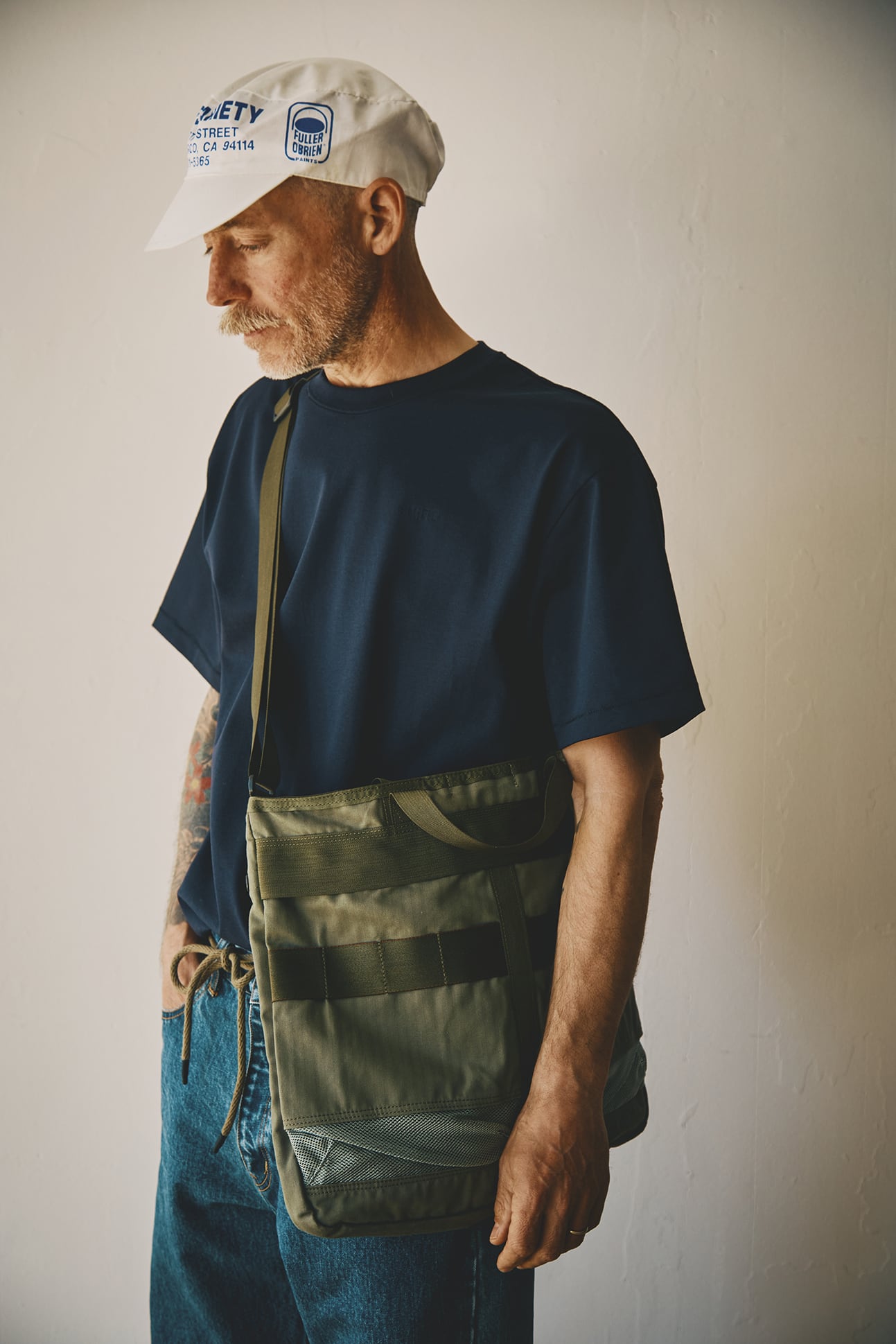 今回は「上質なデイリーギア」をテーマに、コットンヘリンボーン生地などを使ったミリタリのーの要素を落とし込んだデザインの、ヘルメットバッグやエプロンバッグ、ポーチがセットになったパックTシャツと機能的な3アイテムのコレクションとなっています。