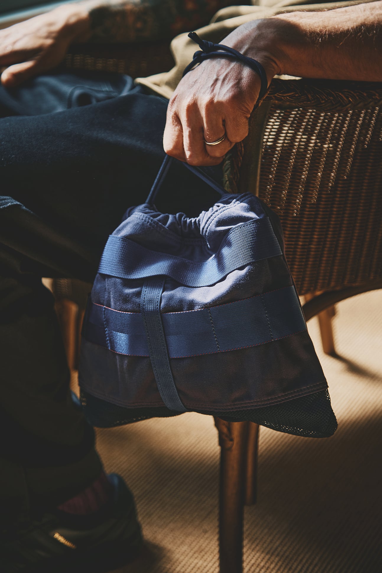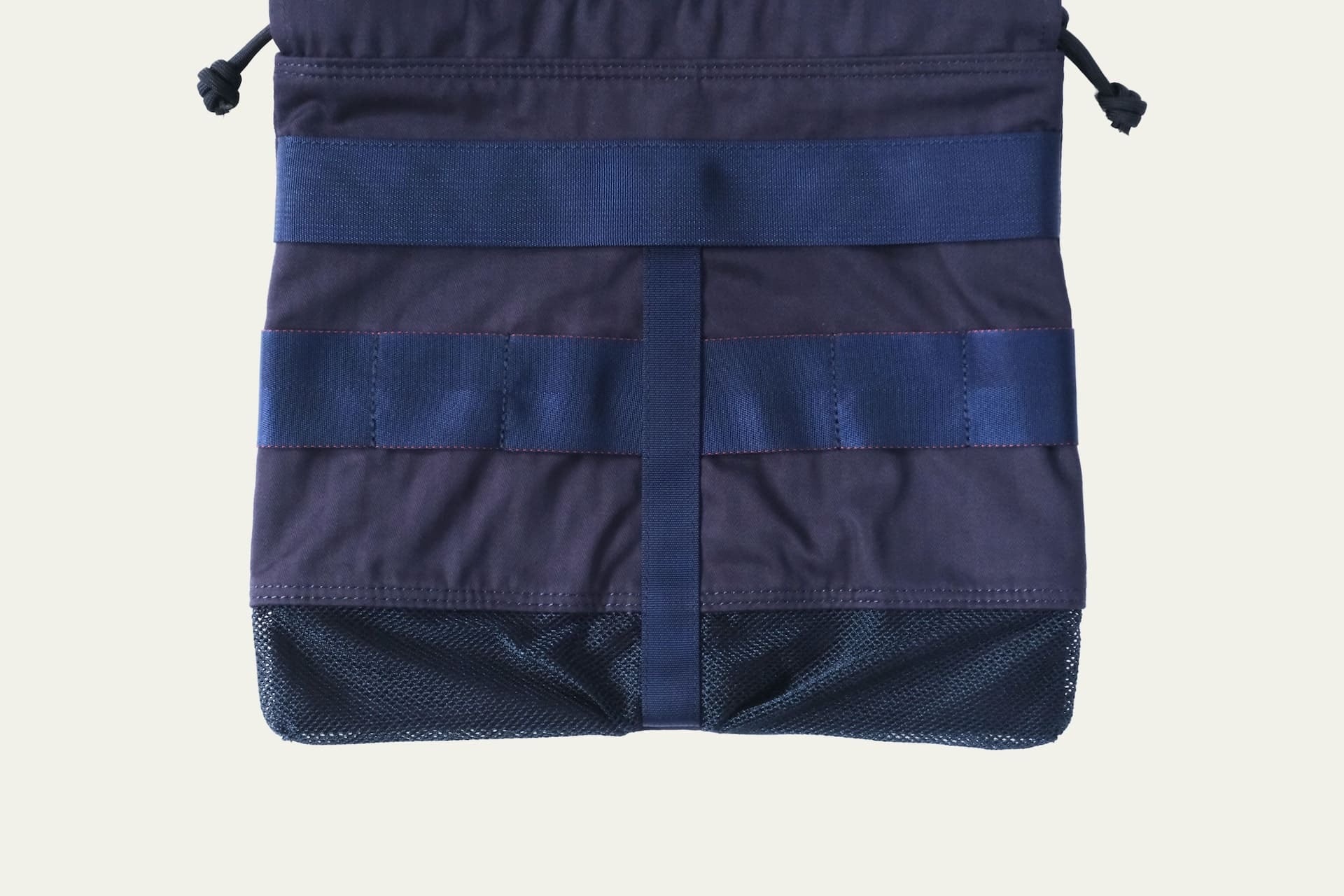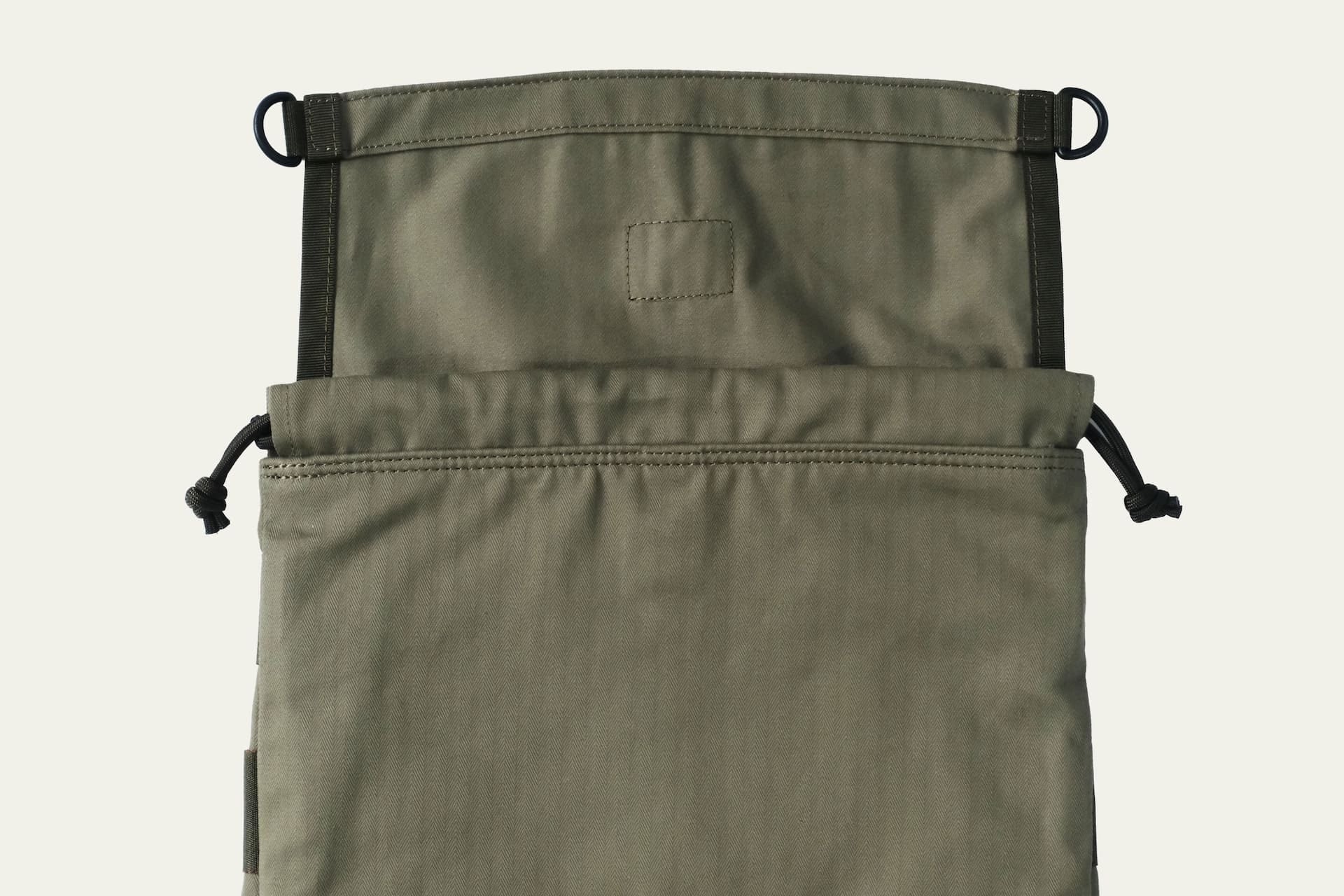 開口部はドローストリング仕様になっており、ショルダーを外して巾着のように使うことも可能です。