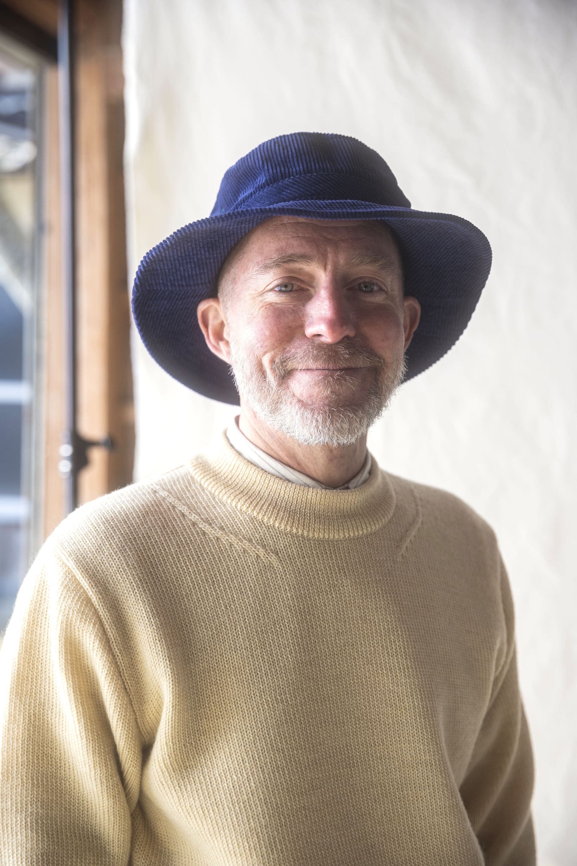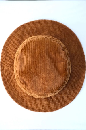 このハットはコットン100%の太畝コーデュロイ生地に硫化染めを施したものを使い、やや大振りのツバが特徴的です。
