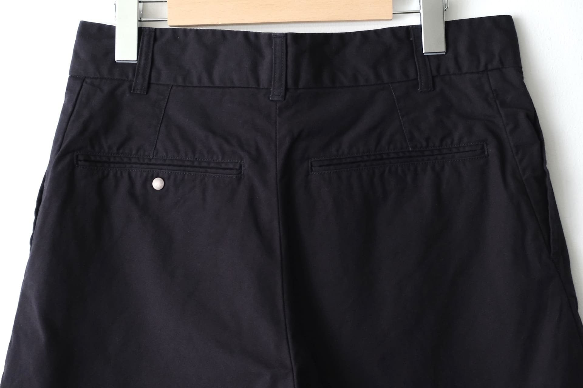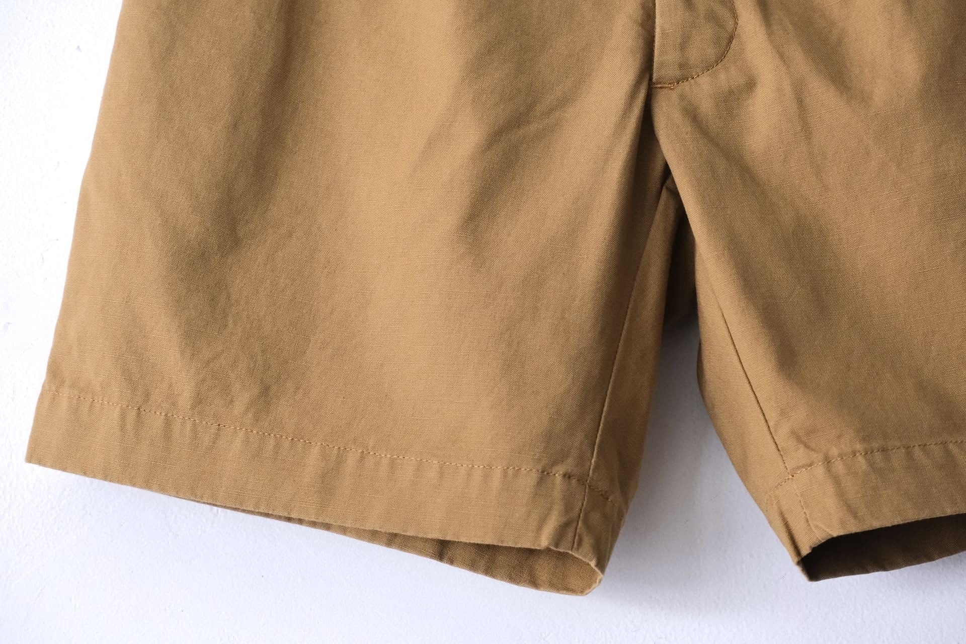 このショーツはヴィンテージの雰囲気を感じるキャンバス素材を使い、定番だったワイドスラックスを短くした仕様の1本です。