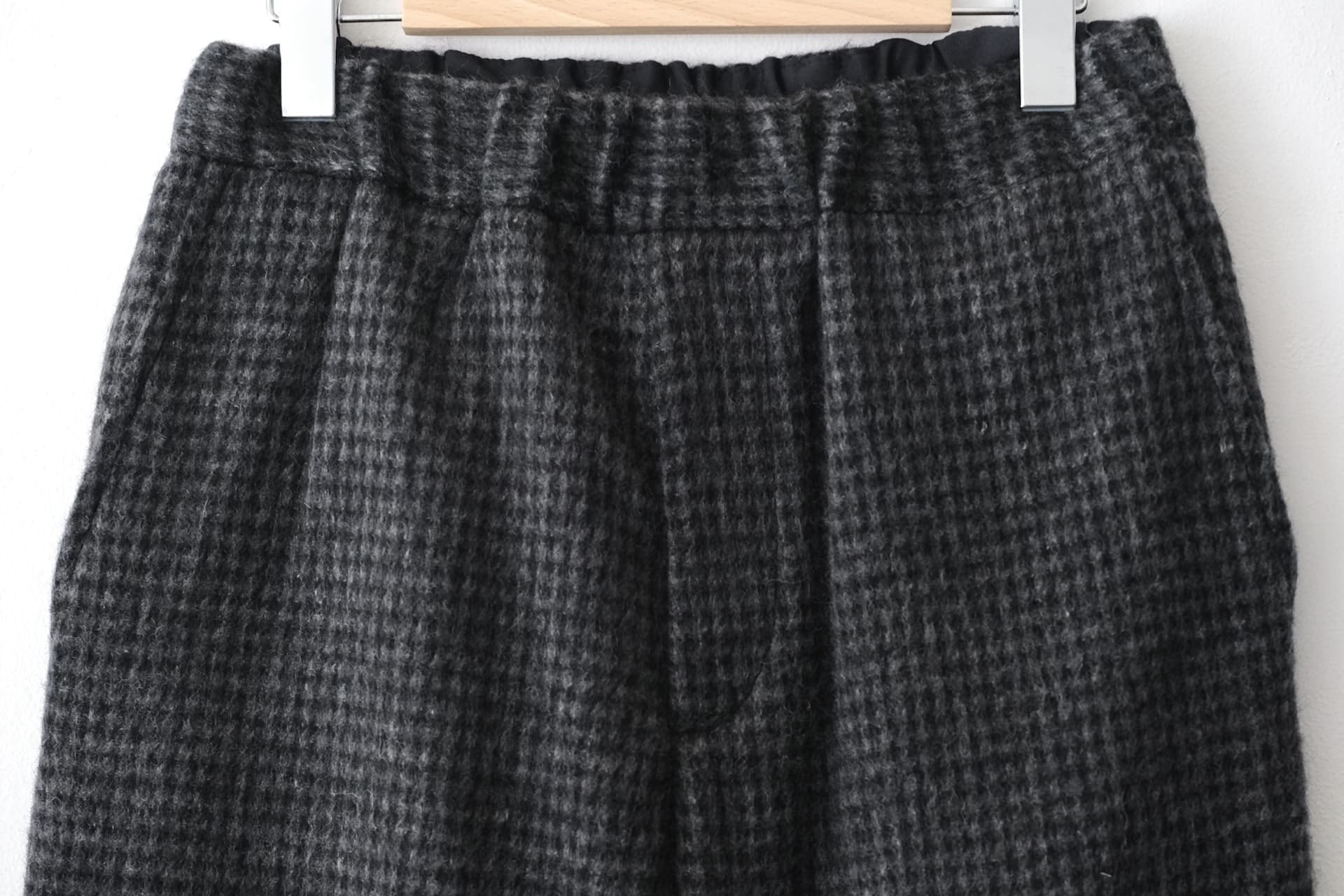 このパンツはシャギーな毛並みのハウンドトゥース生地を使い、ゆったりとしたモモ周りから裾にかけてテーパードが掛かった綺麗なシルエットです。