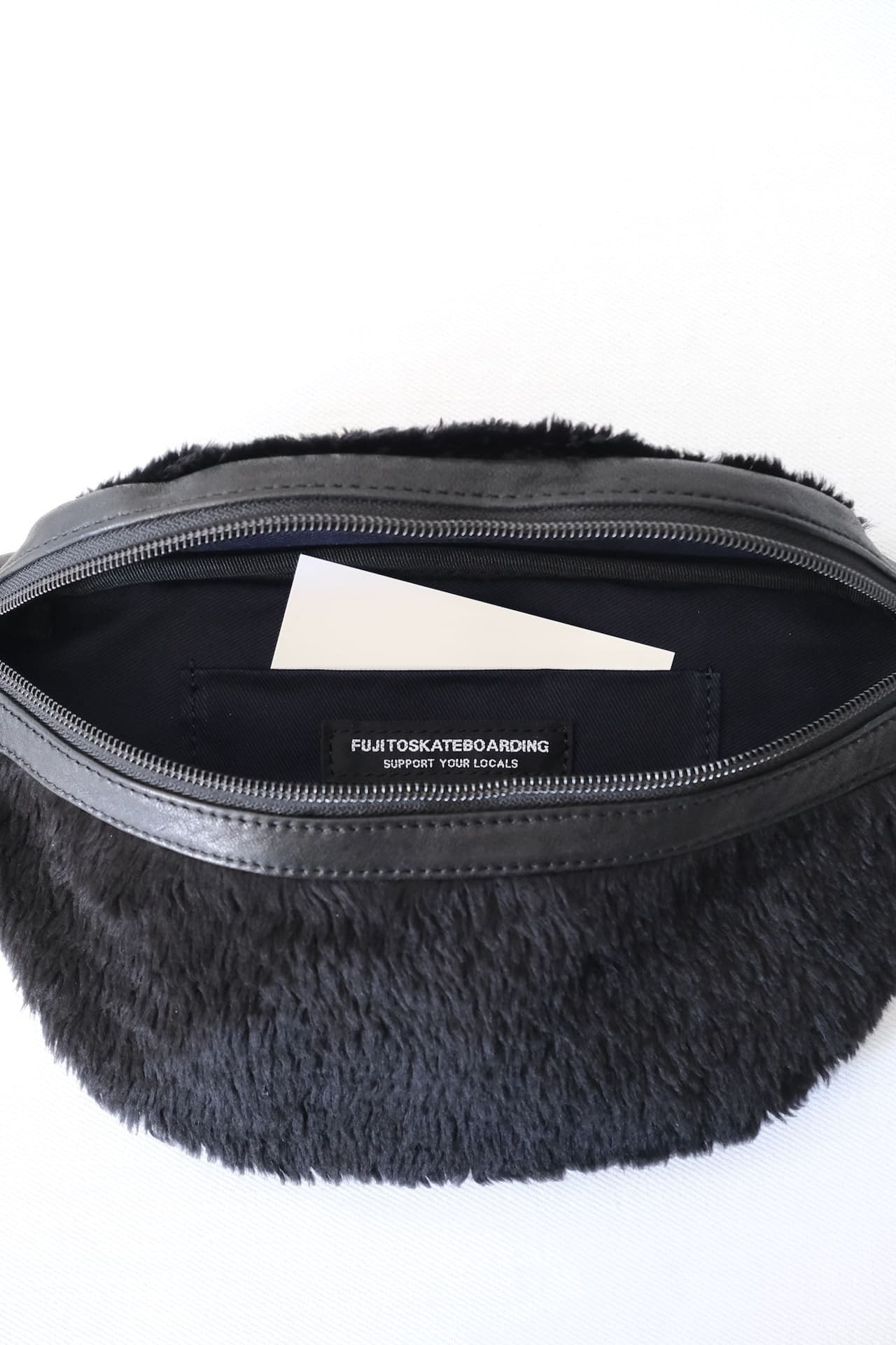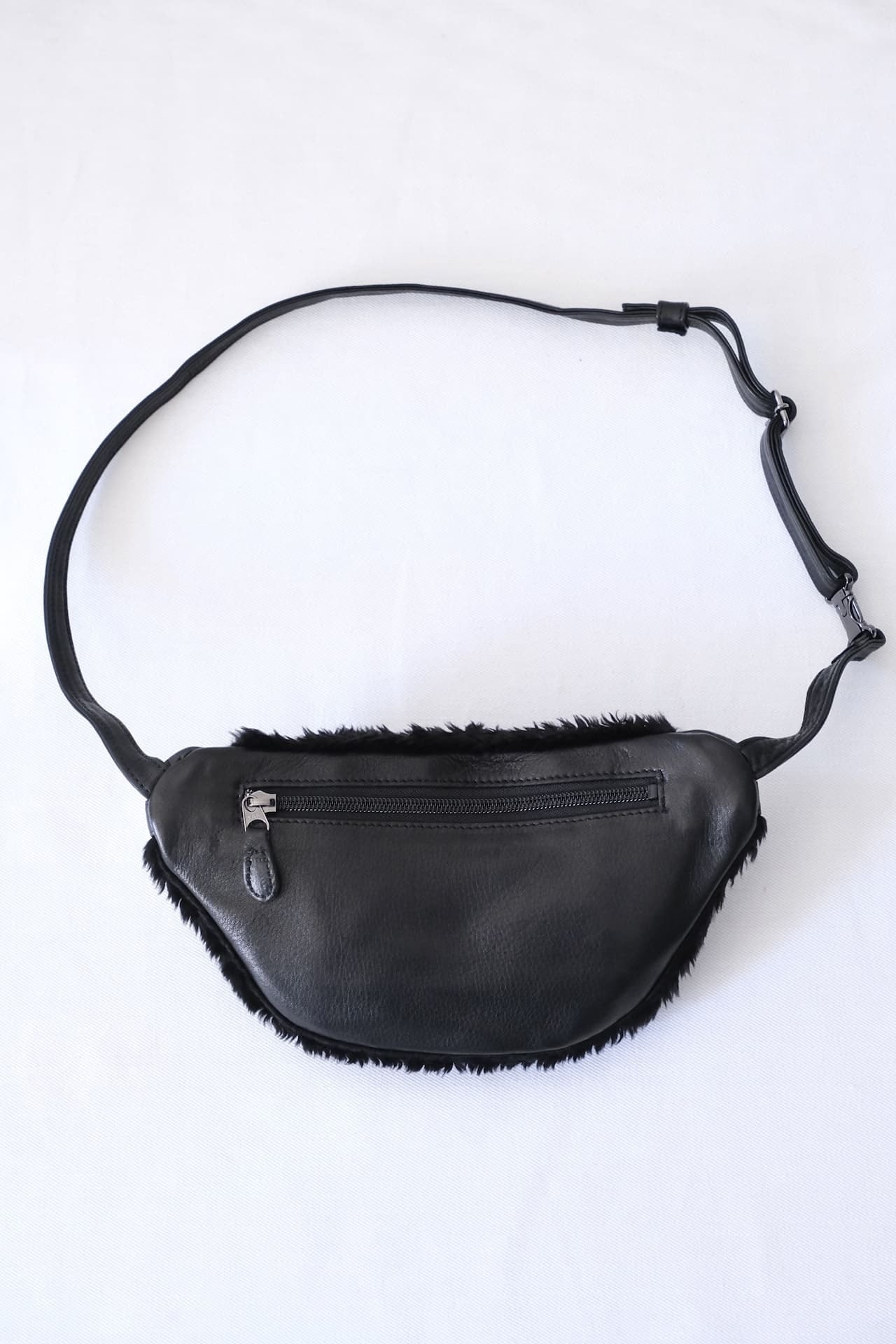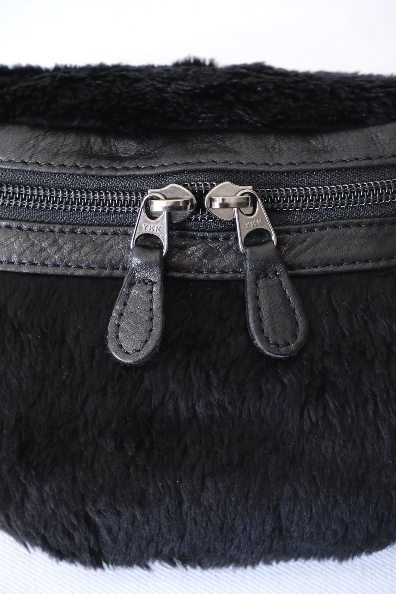 このファニーパックは、ボア素材と柔らかな牛革を使用したウエストポーチ型のバッグです。