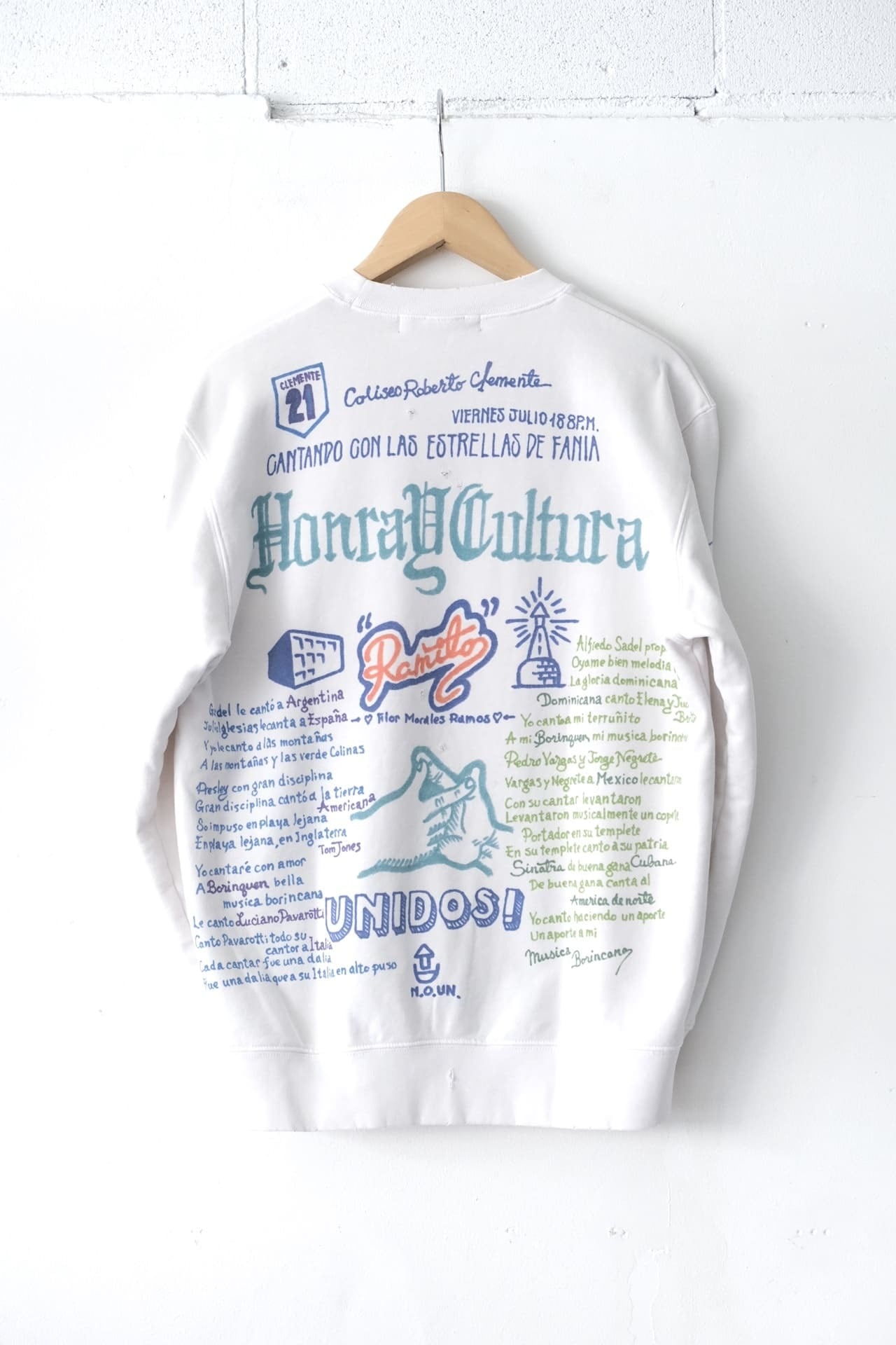 このスウェットは、一点一点手作業でエイジング加工と特殊な転写プリントを施しています。