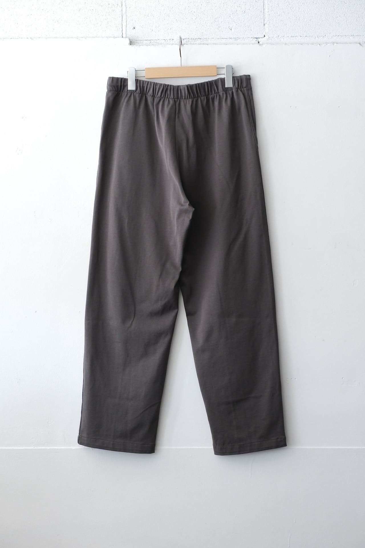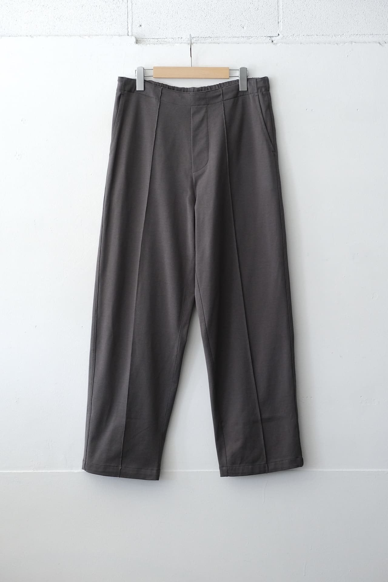 このパンツはサラッとした肌触りのコットンジャージー素材を使い、ピンタックのセンターシームがポイントでスラックスっぽい雰囲気の1本です。