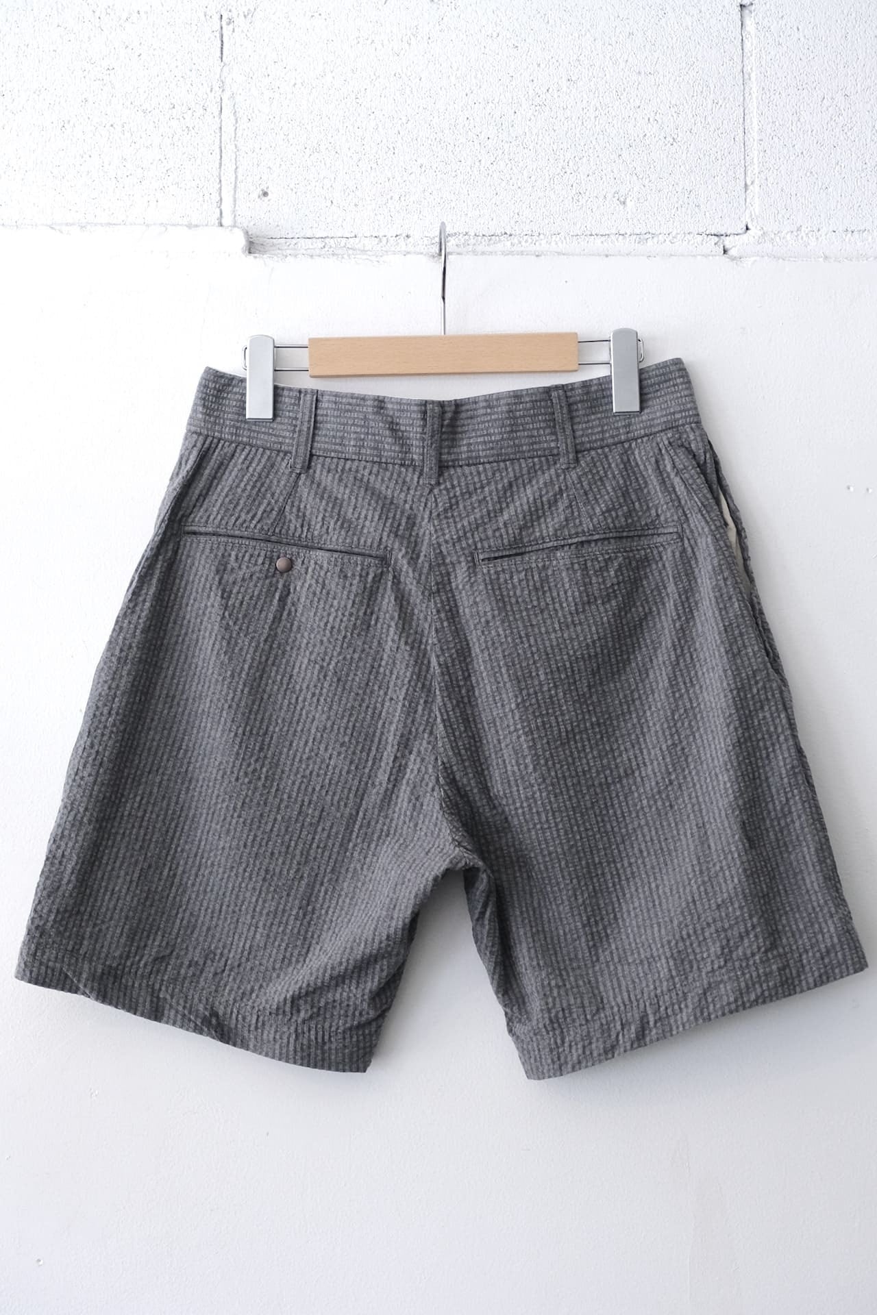 Cut from a breezy-airy-seersucker cloth. Detailed with a relaxed fitting shape, easy and comfortable to wear. Featuring the one tuck and the  front snapped buttons and left-back-pocket has a snap button too. A perfect pairing with a low-key-style-t-shirt or our Shirt-Jacket or our Fatigue Shirt with the same materials.