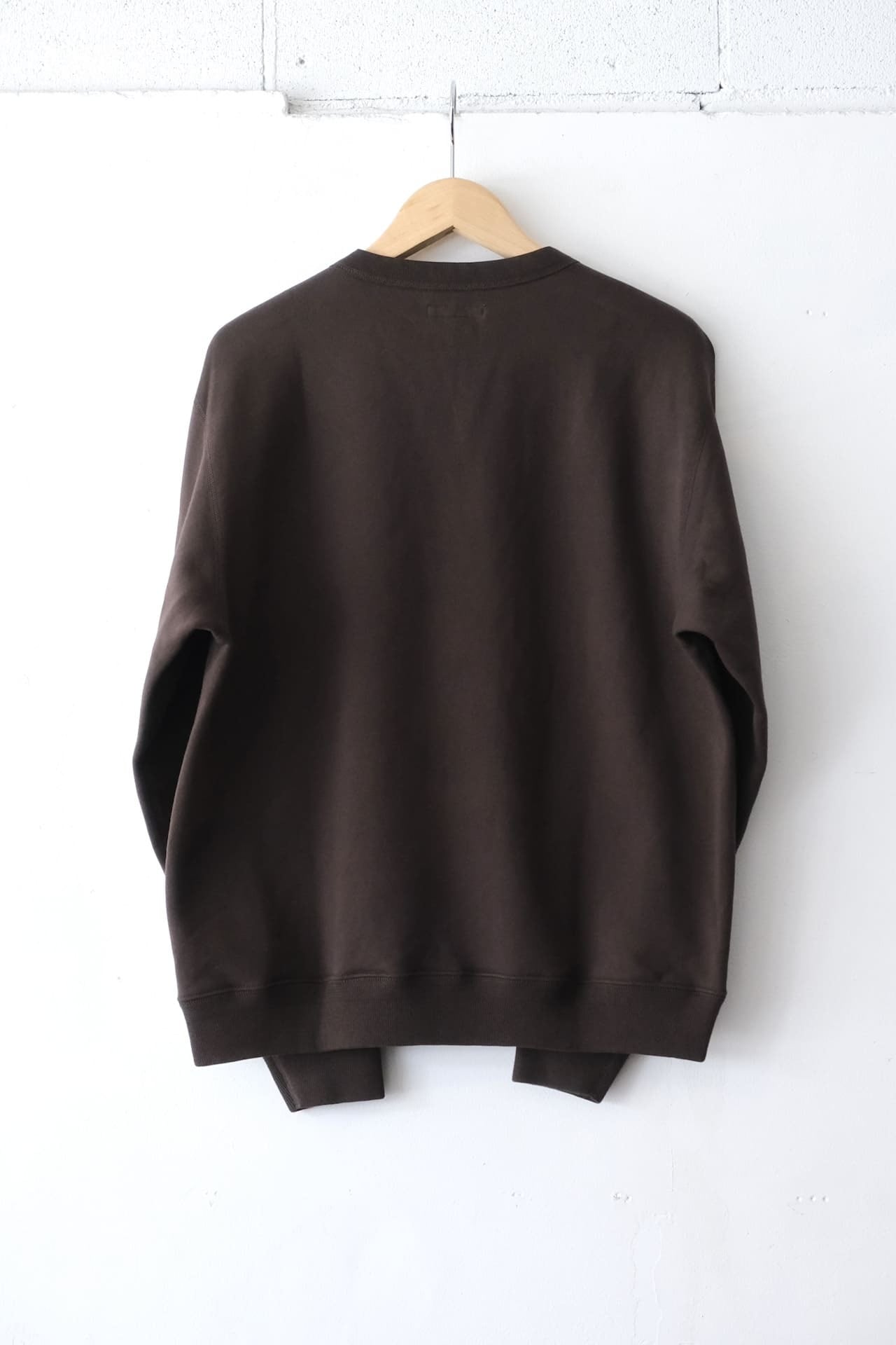 このクルーネックスウェットはコットン100%の程よい厚みの生地感で、少しゆったりとしたボックスシルエットになります。
