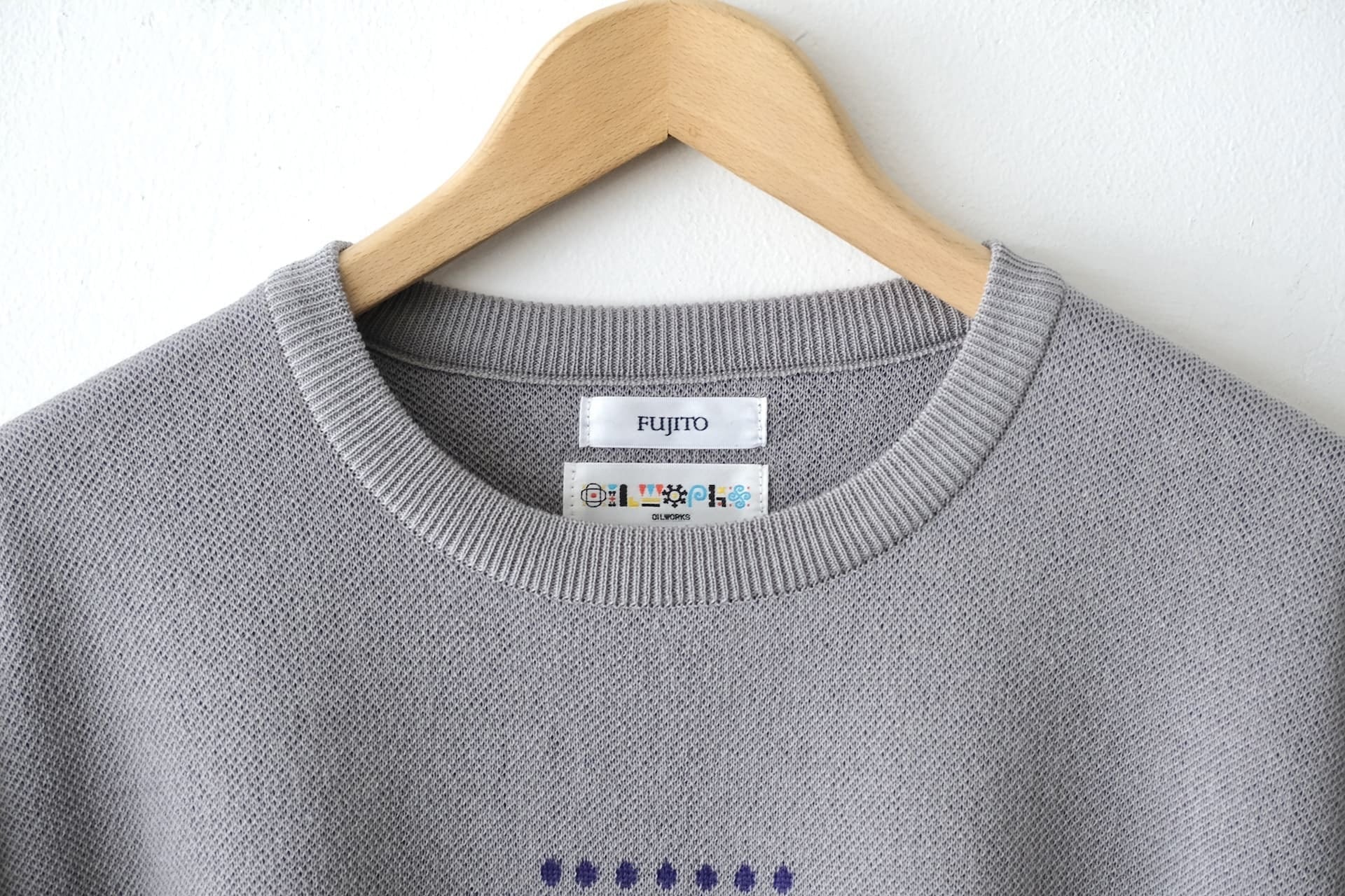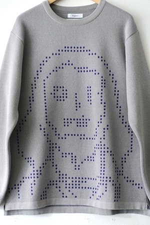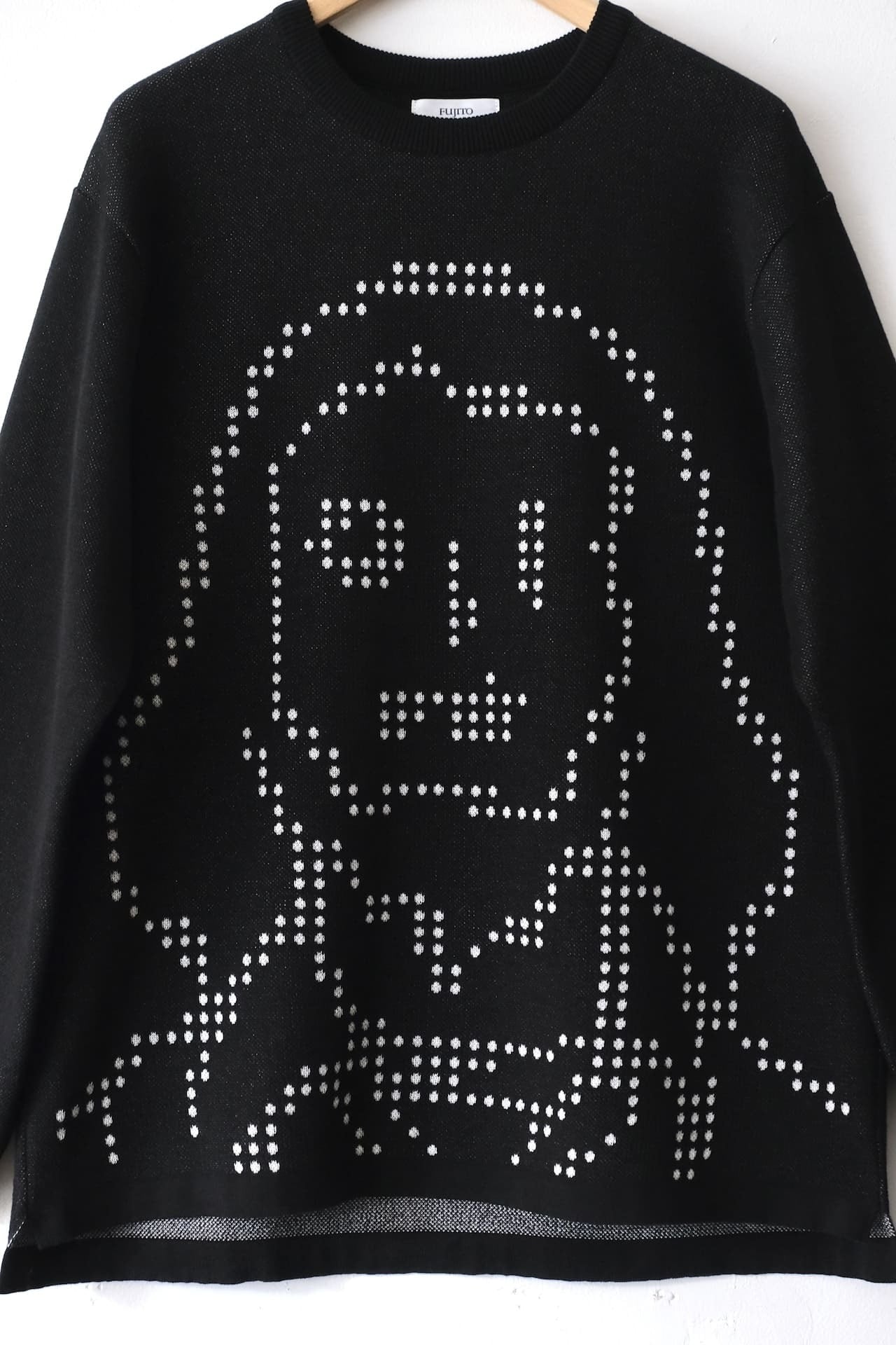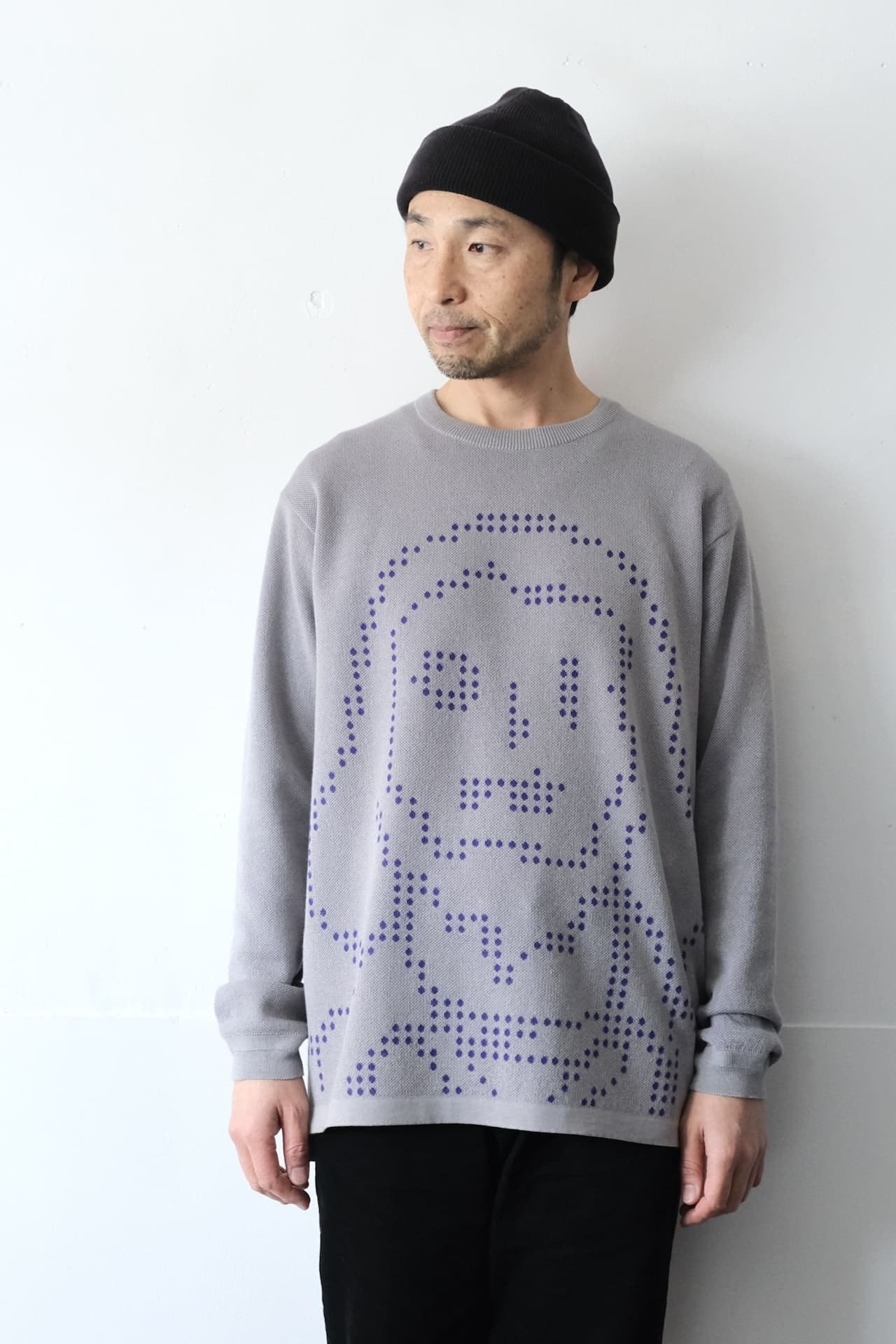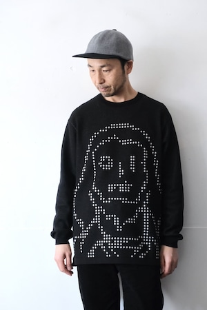 そのOILWORKSとコラボしたニットセーターは、フロント全体にドットの'OILMAN'が編み込まれたインパクトある1枚です。