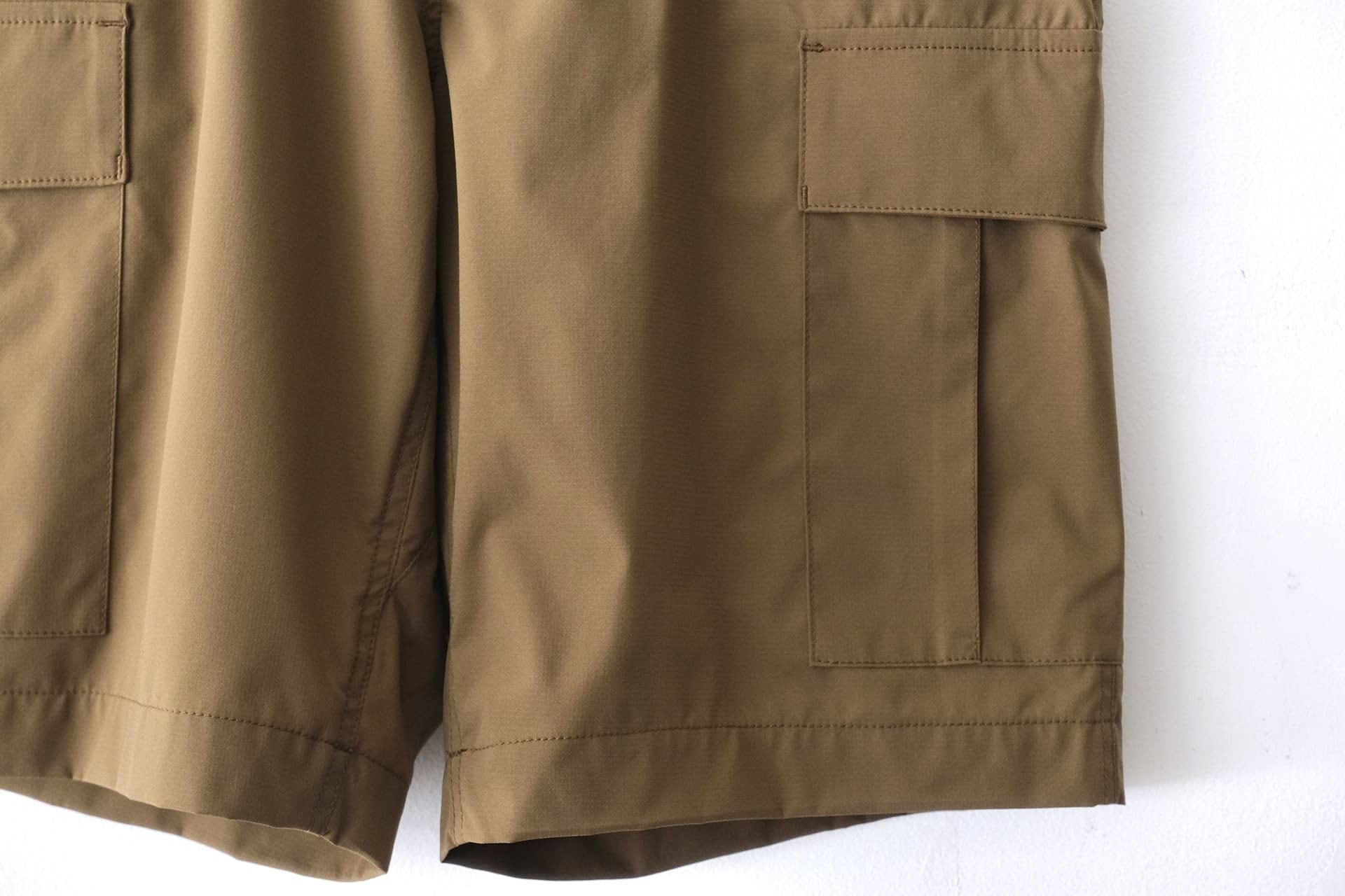 このカーゴショーツは、伸縮性や強度があるポリエステルのリップストップ生地が使われています。