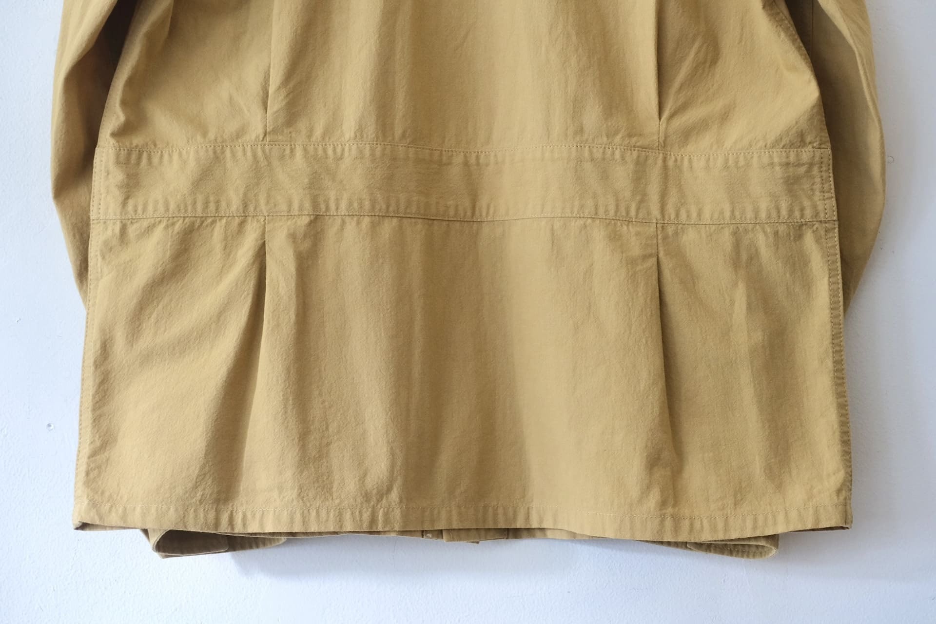 Cut from our original cloth with a unique uneven surface. Reasonably thick and has a dry-touch feeling for easy wearing. Detailed with a laid-back silhouette and squeezed-back side and extra-large front pockets. Classic details of the Jungle fatigue jacket  are well transitioned into modern style. It can be an all round staple.