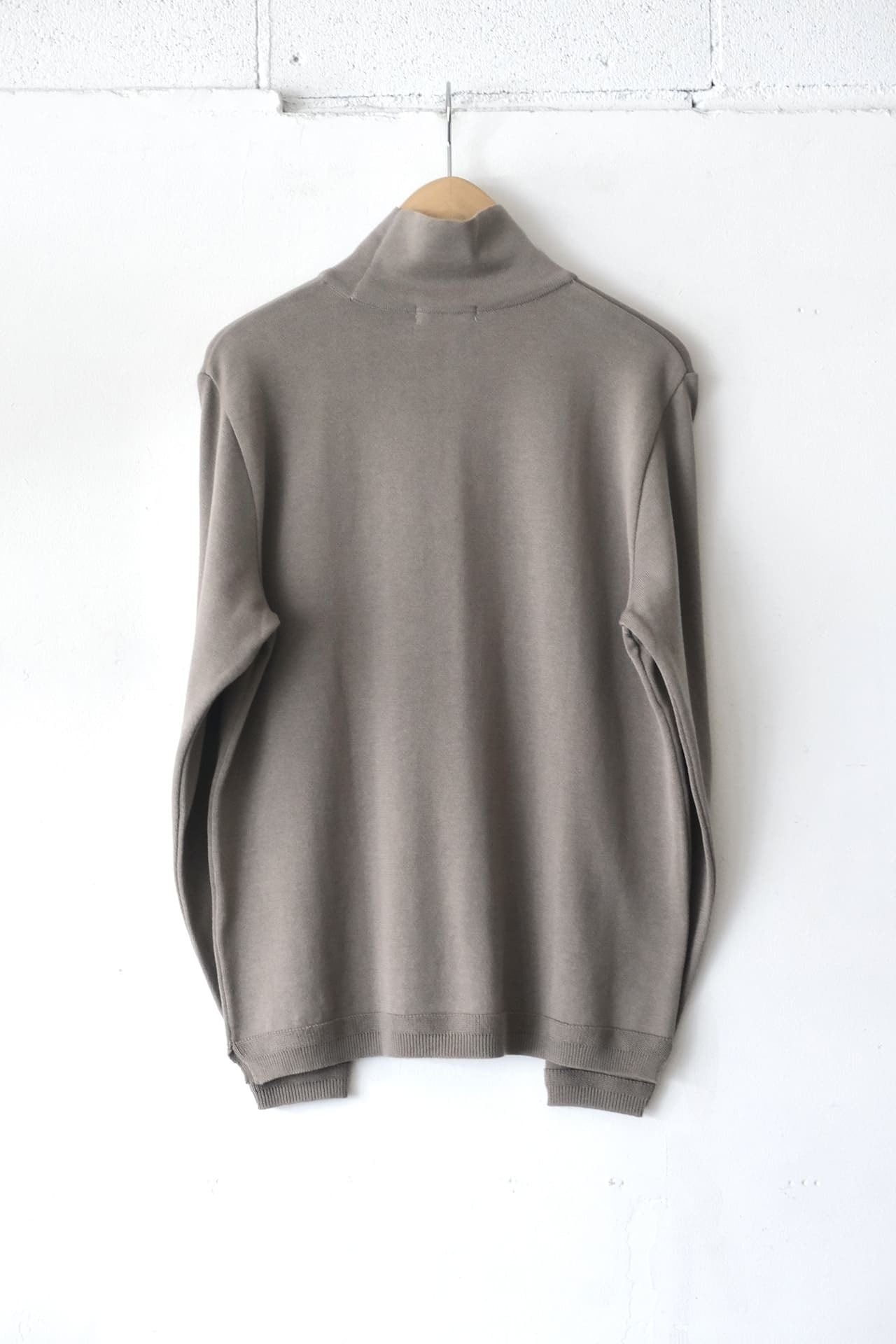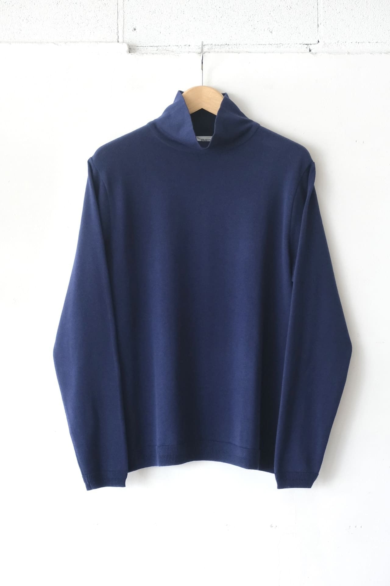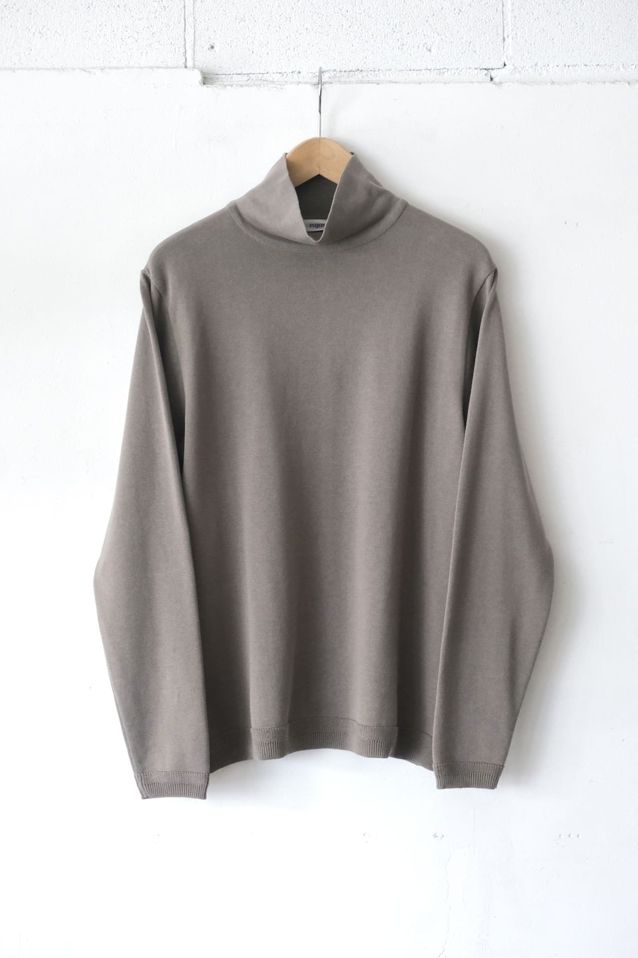 このタートルネックニットは、12ゲージの綿糸を天竺編みで仕上げています。