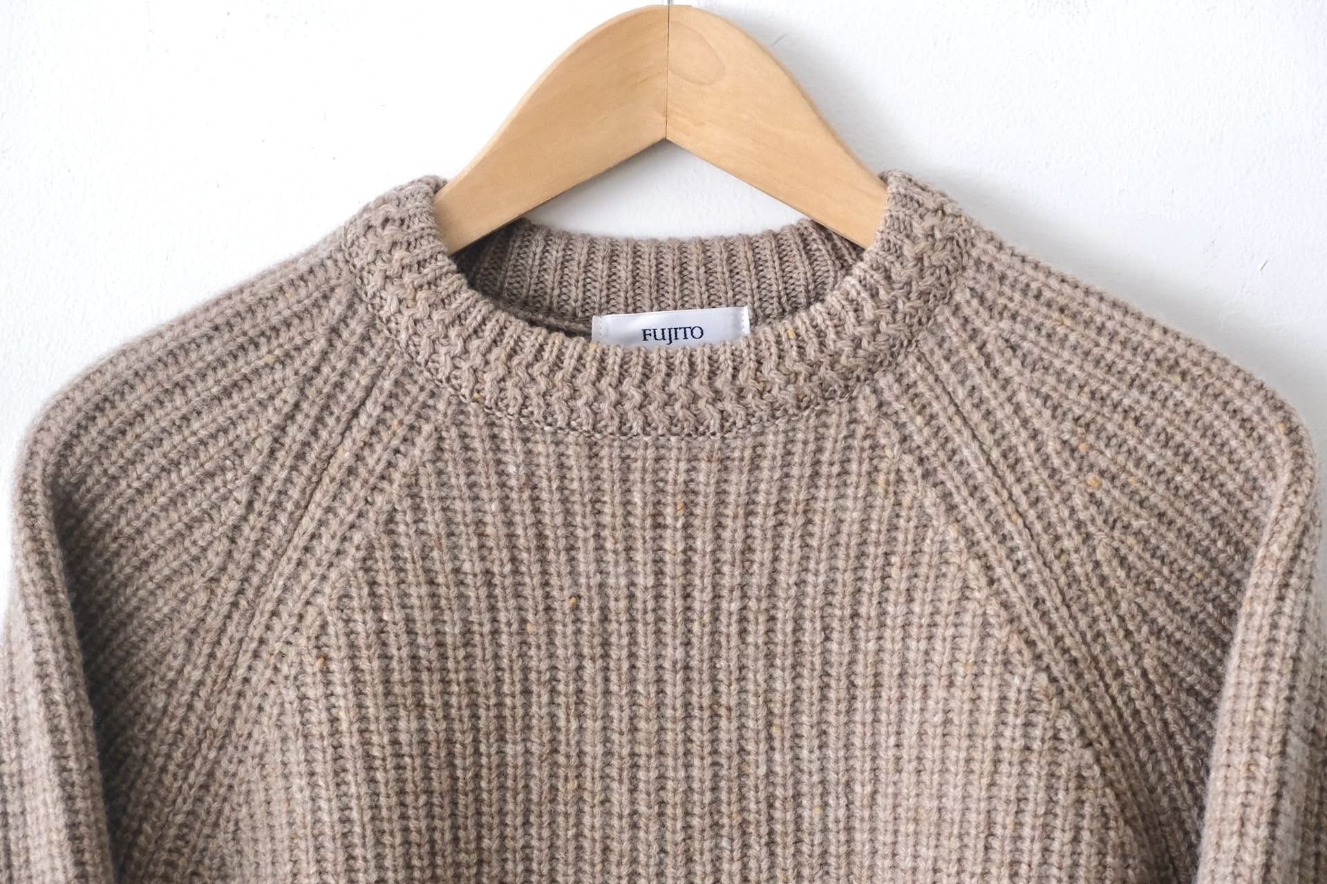 FUJITO Rib Knit Sweater Beige,Charcoal