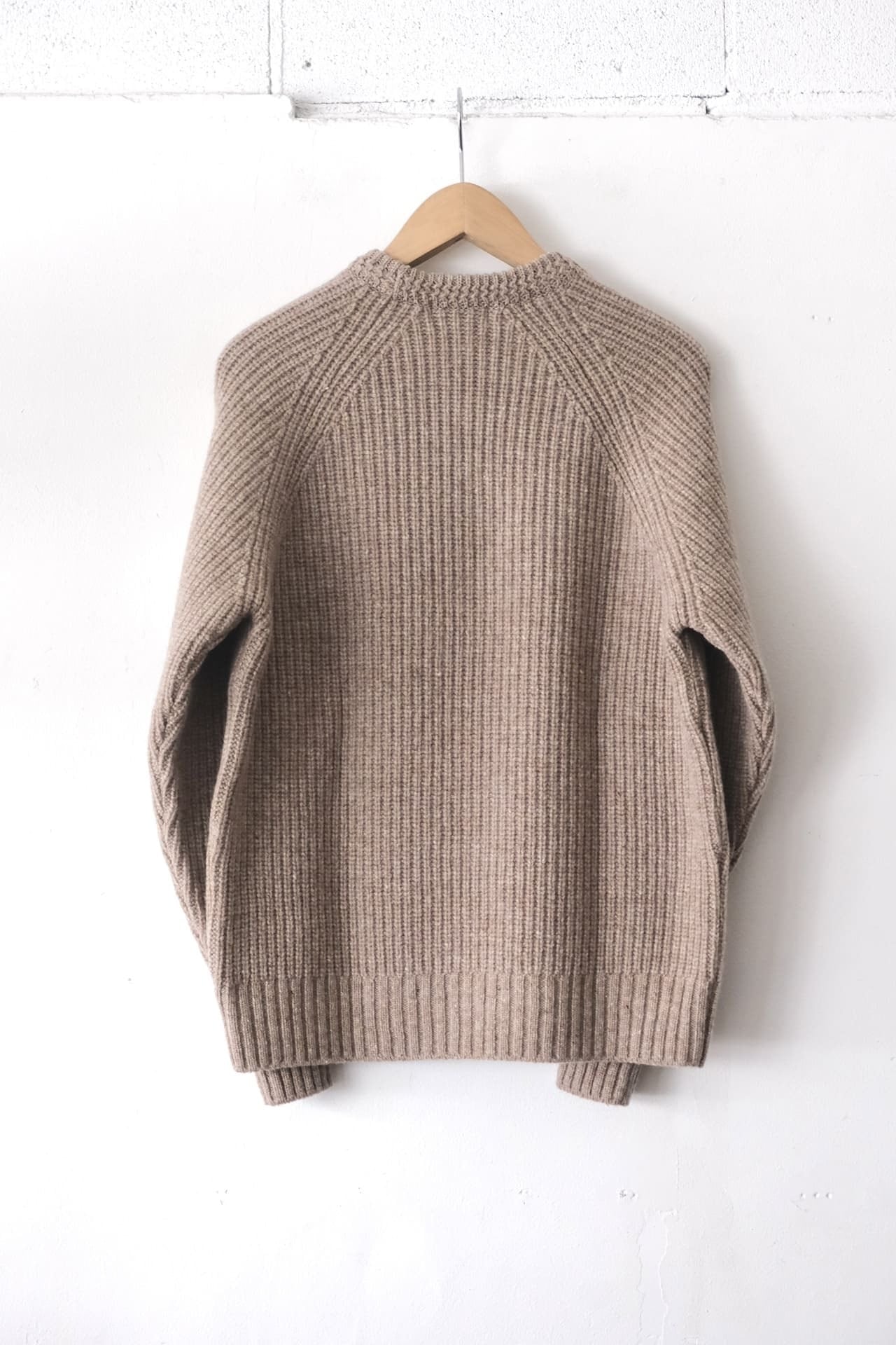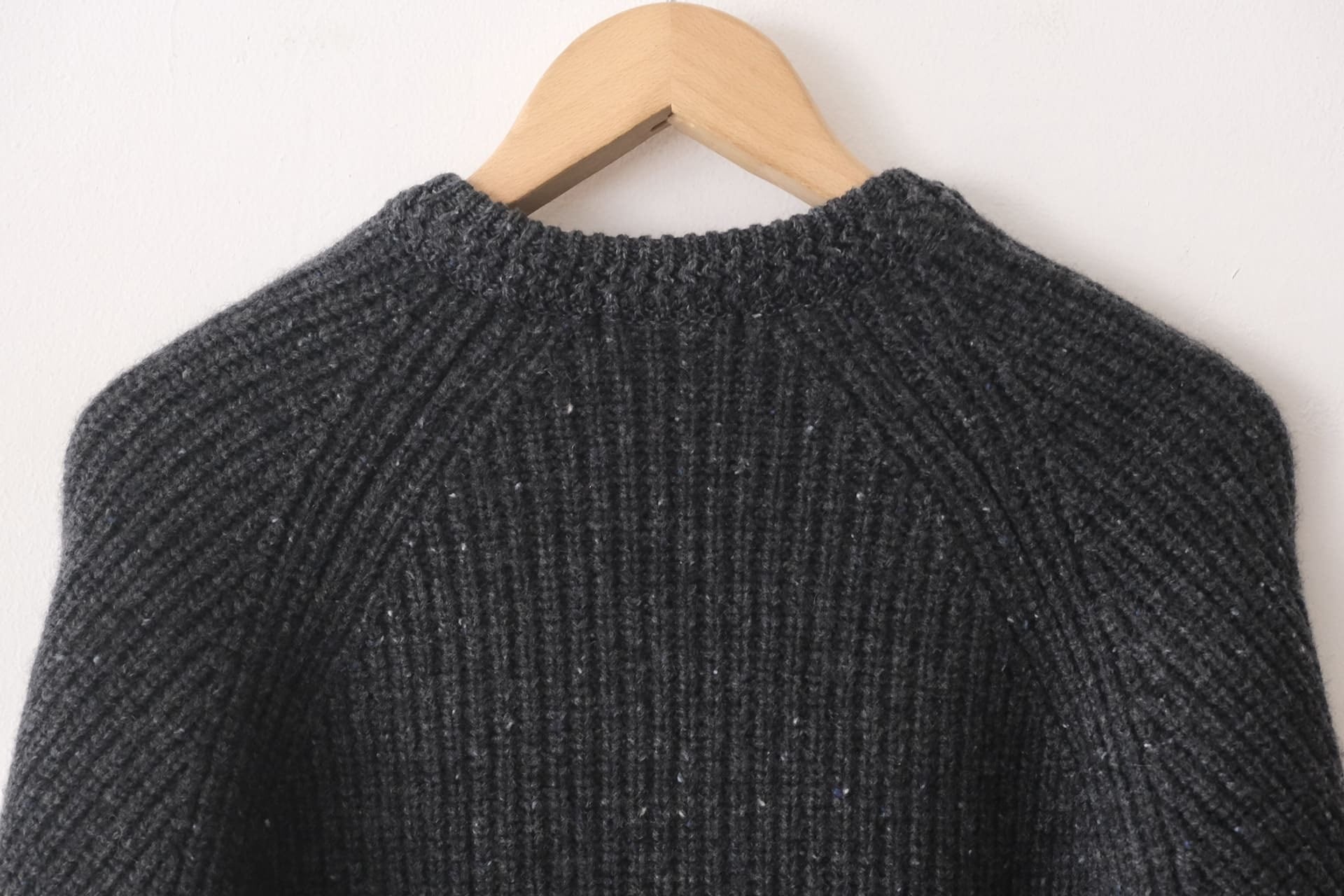 このニットセーターはウール100%になり、畦編みでクラシックな雰囲気に仕上がっています。